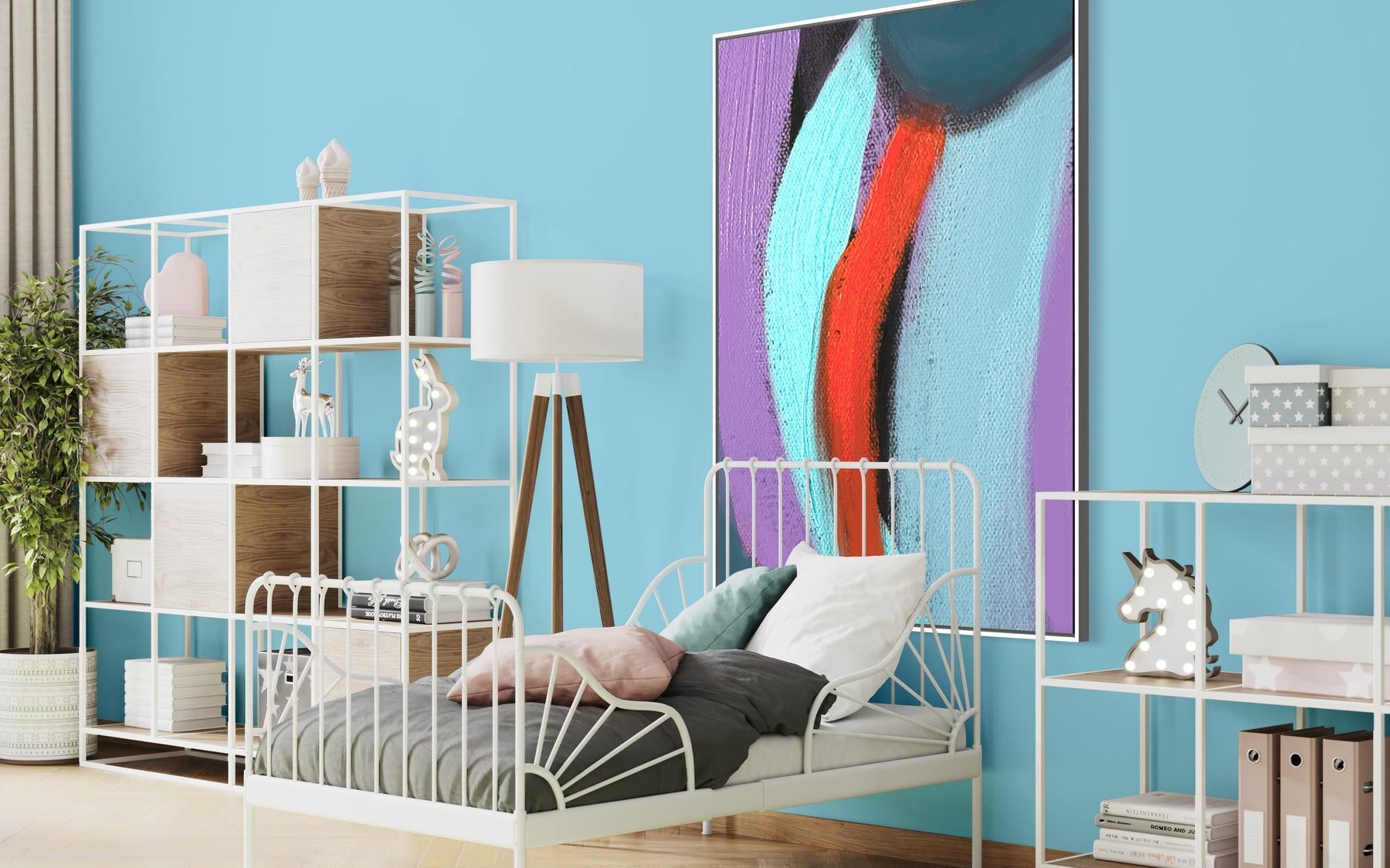 "Crimson Pulse" is an abstract painting that radiates energy and intensity through its bold use of color and dynamic brushstrokes. The central red stroke, bordered by black, cuts through the vibrant purple and light blue background, creating a striking focal point that captures attention. The textured and layered brushstrokes add depth and movement, evoking a sense of power and emotion. The title "Crimson Pulse" reflects the painting's dynamic and lively composition, making it a captivating and thought-provoking piece that adds a touch of modern elegance to any space.