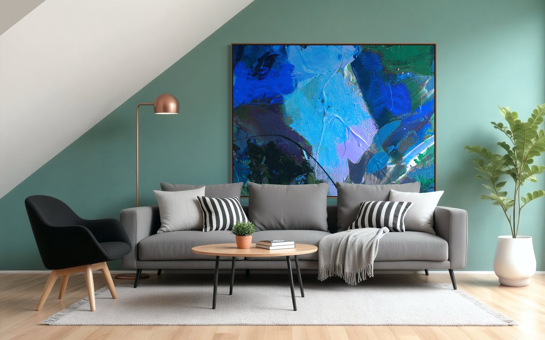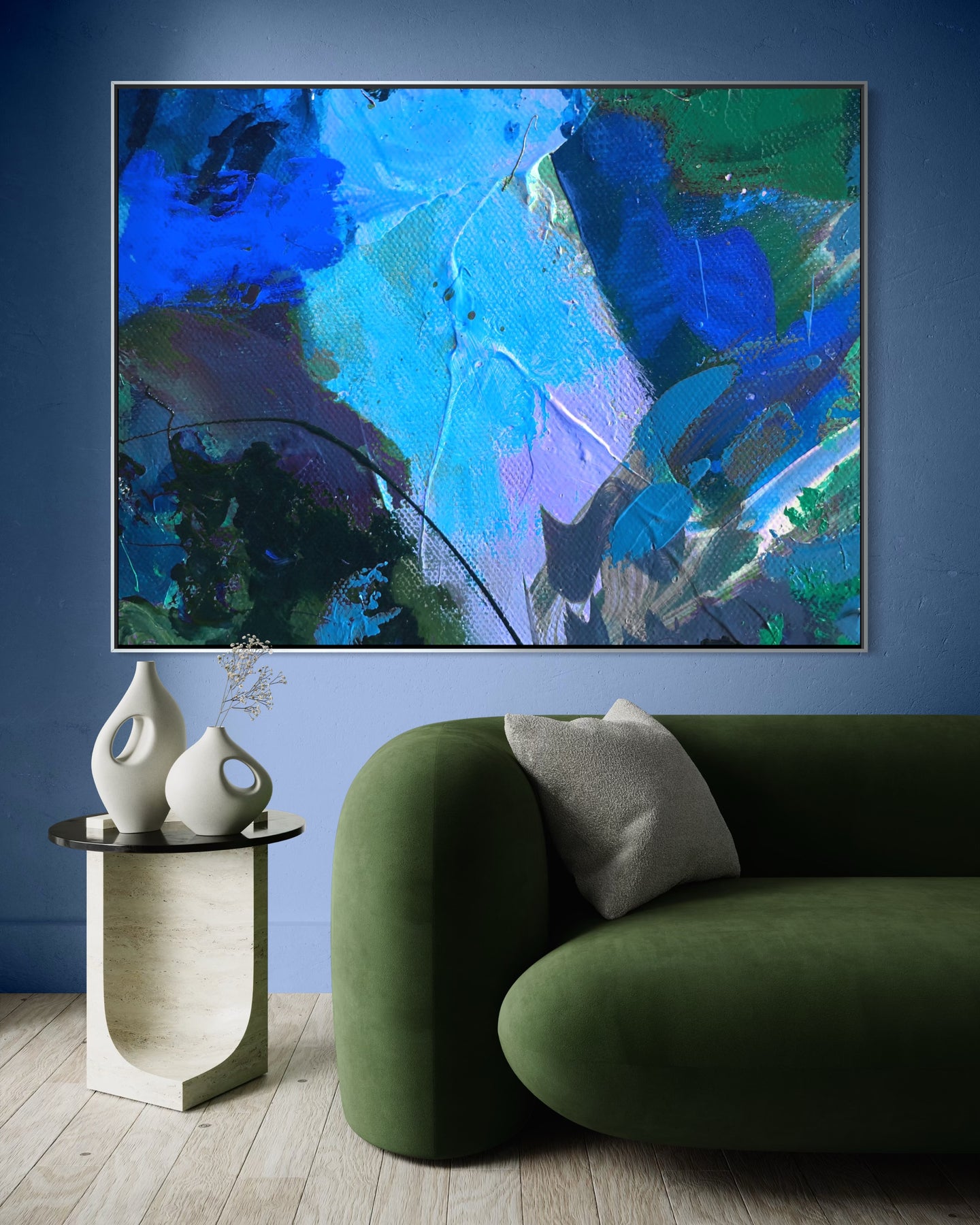 A 60 × 40 inch painting will measure approximately 61.5 × 41.5 inches once framed.