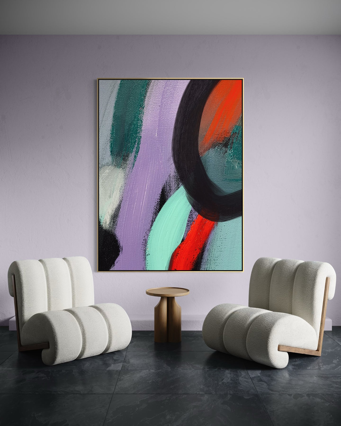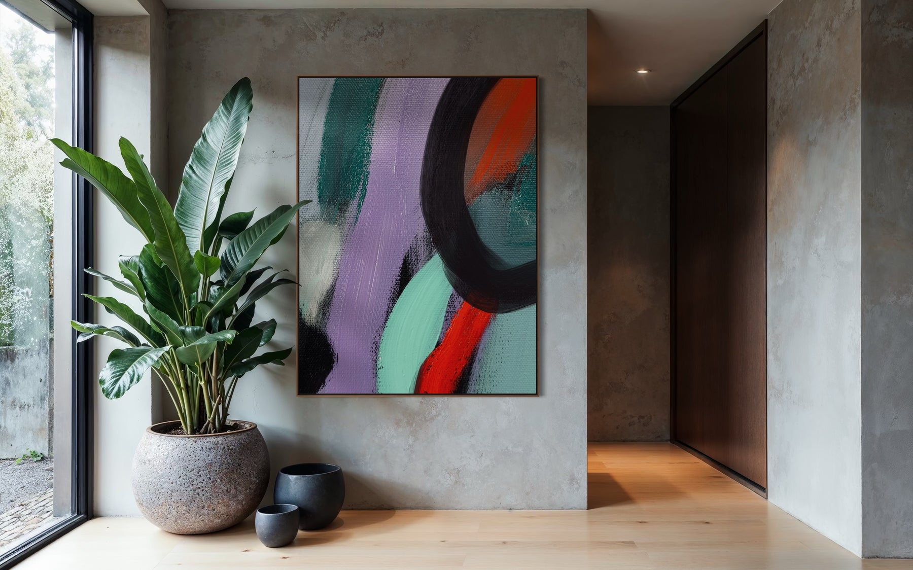 Each artwork can be completed with a handcrafted wood floating frame, designed to enhance depth while preserving the integrity of the canvas.