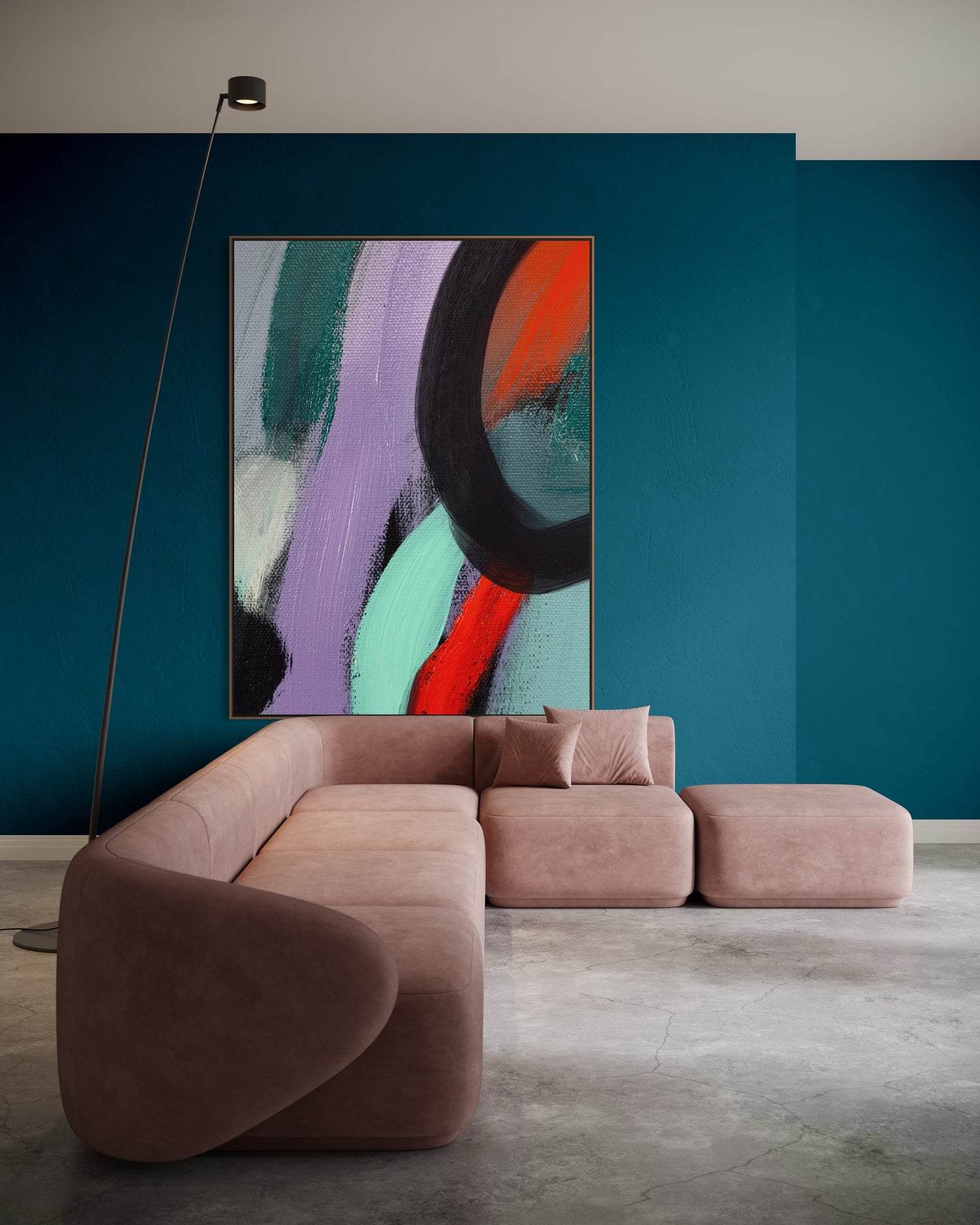 A 60 × 40 inch painting will measure approximately 61.5 × 41.5 inches once framed.