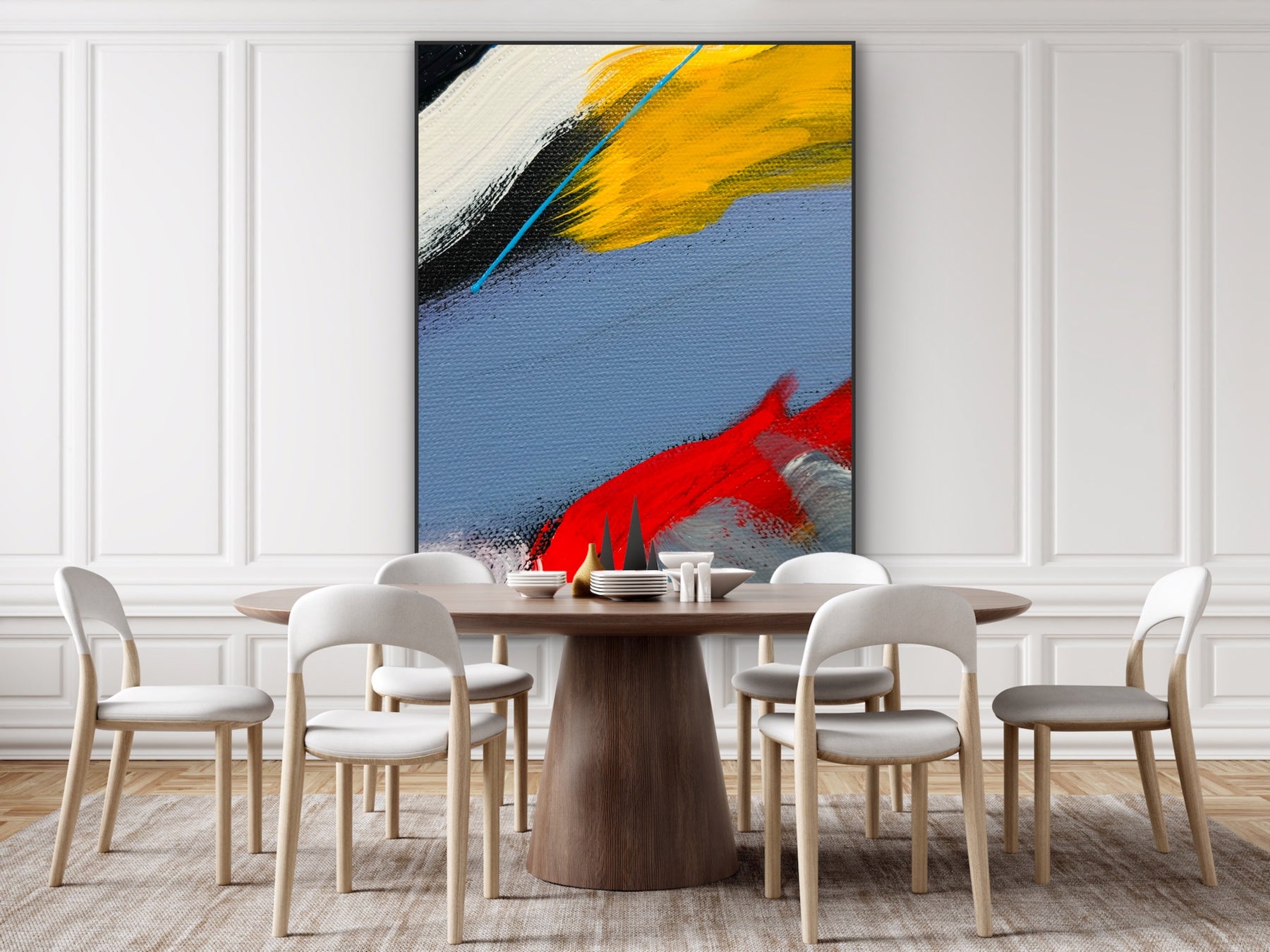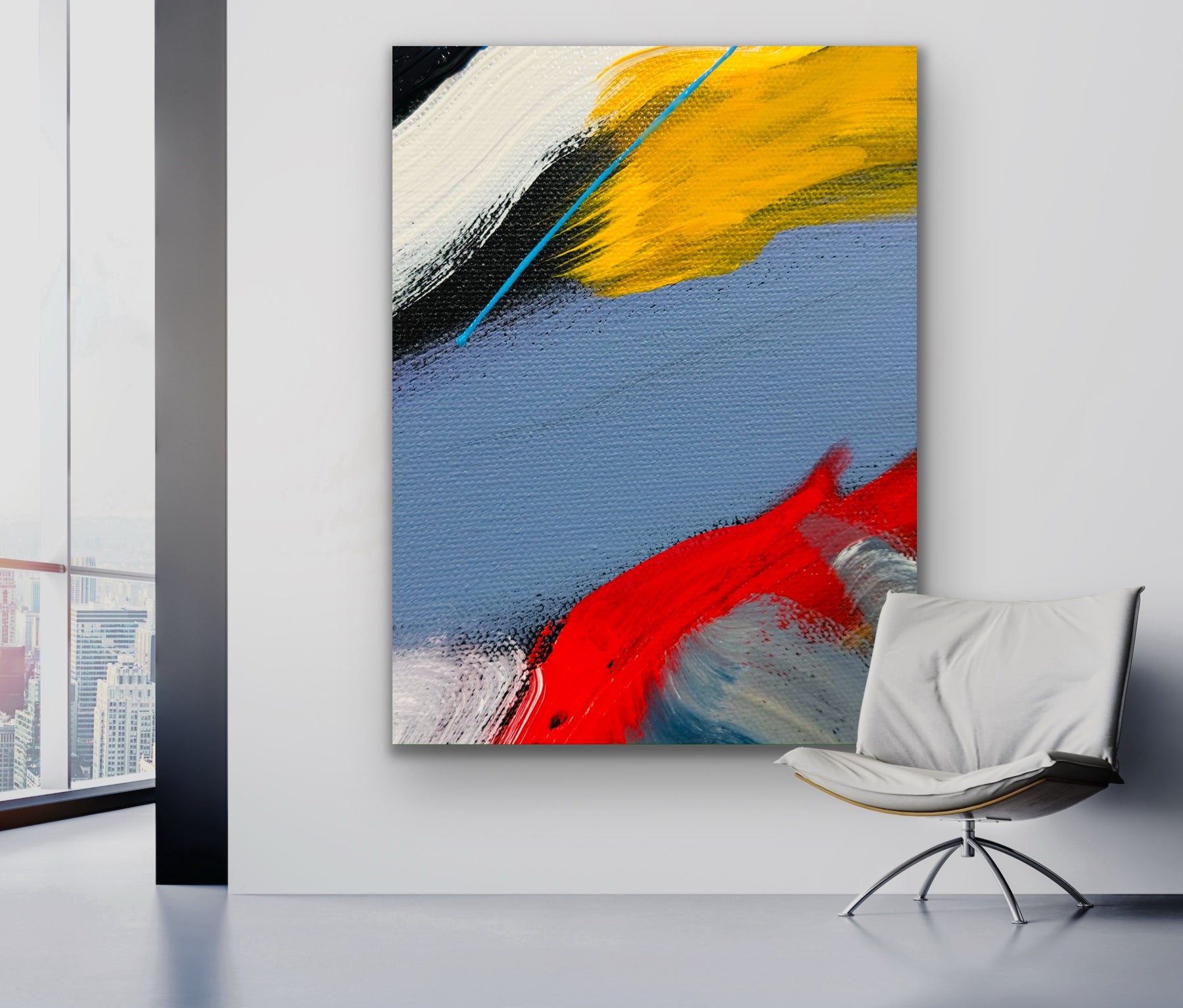 This expressive abstract painting explores the moment where calm space meets sudden energy. A vibrant band of yellow moves across soft tones while a dynamic red stroke introduces movement and intensity. The composition reflects the moment of emergence — where light, motion, and direction come together to create new momentum. Created for collectors drawn to bold color relationships and modern abstraction, this piece brings optimism and visual energy to contemporary interiors.
