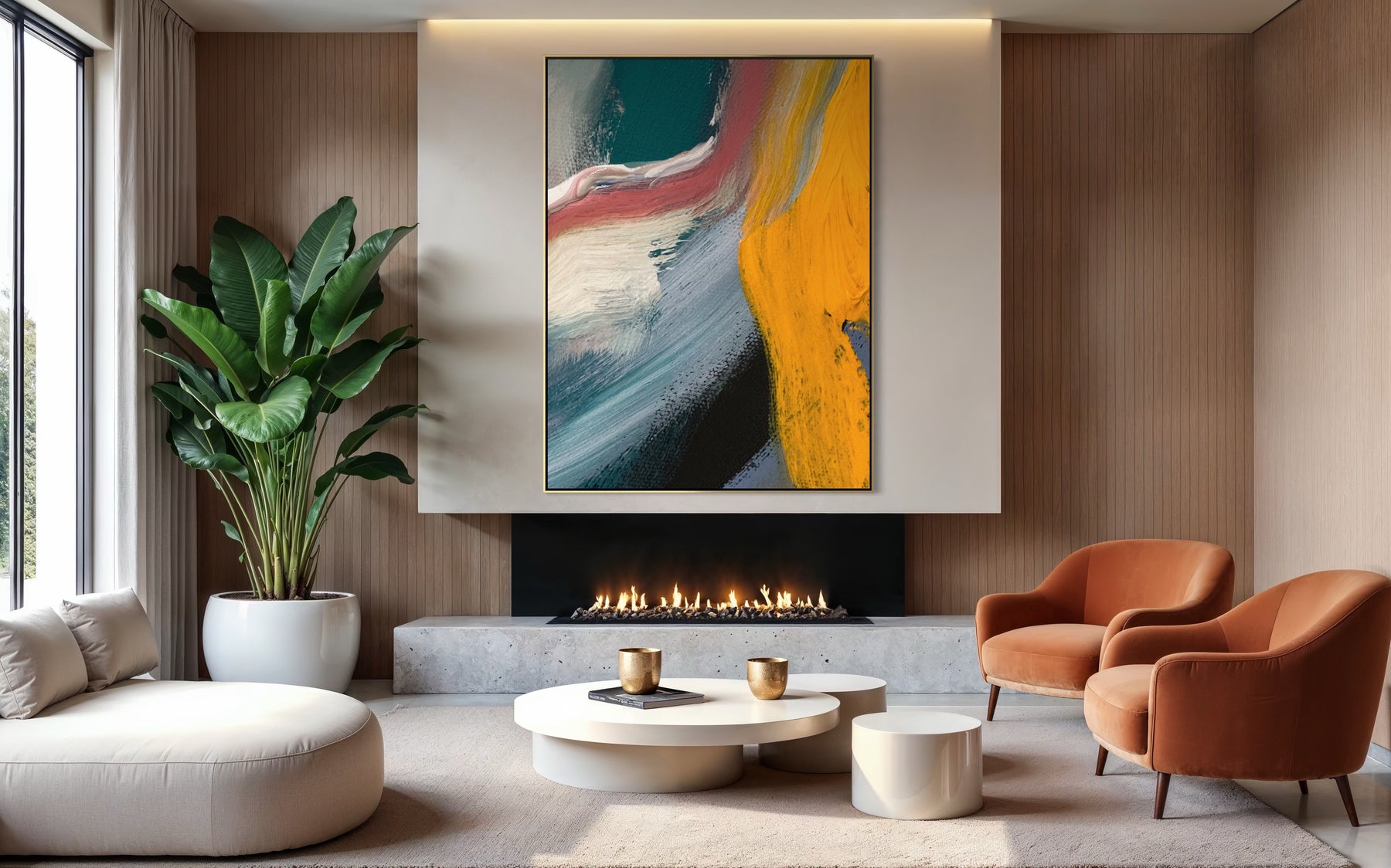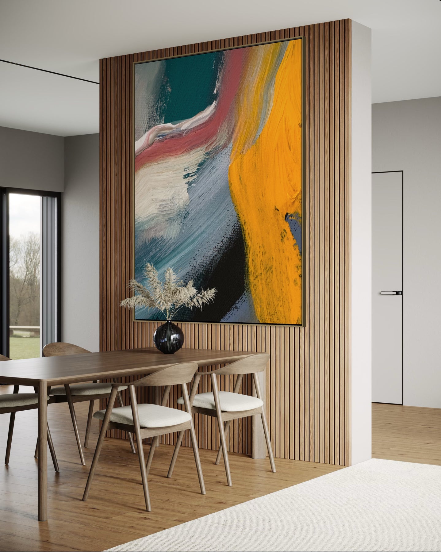 Each artwork can be completed with a handcrafted wood floating frame, designed to enhance depth while preserving the integrity of the canvas.