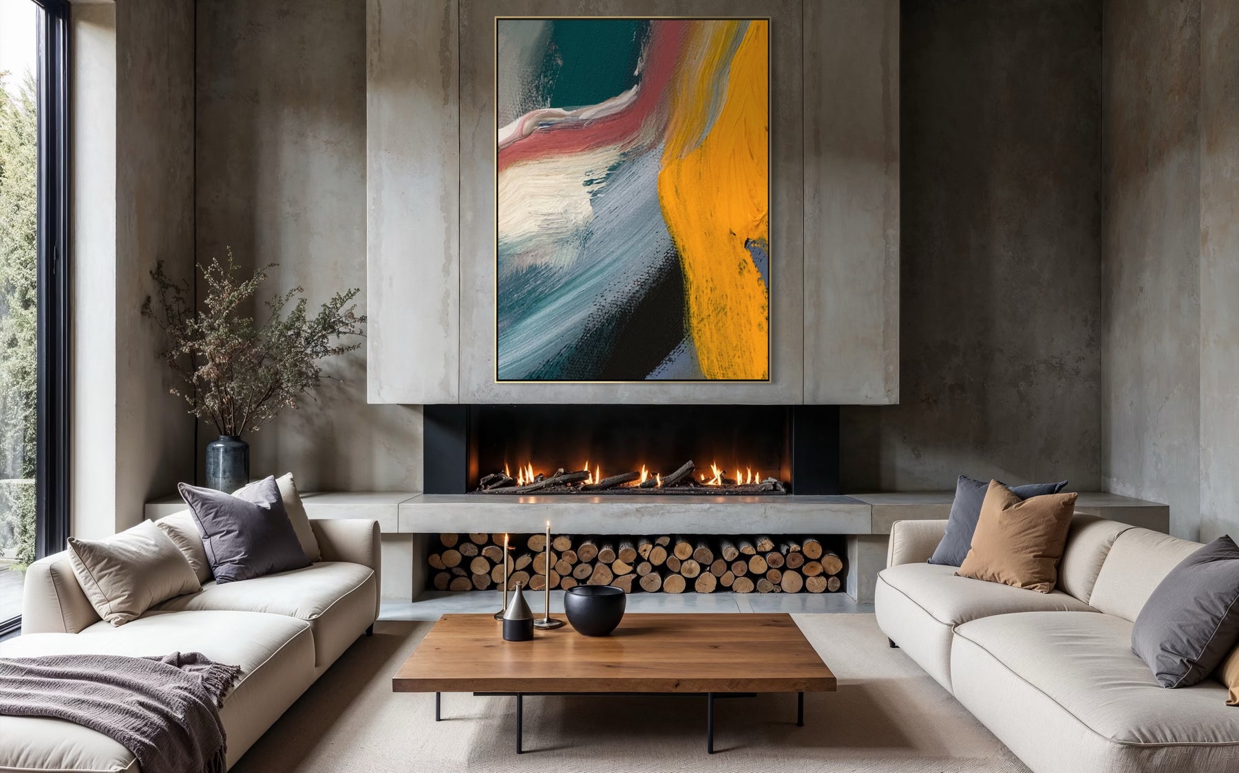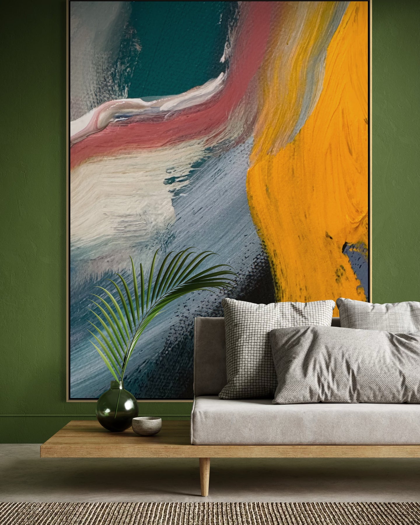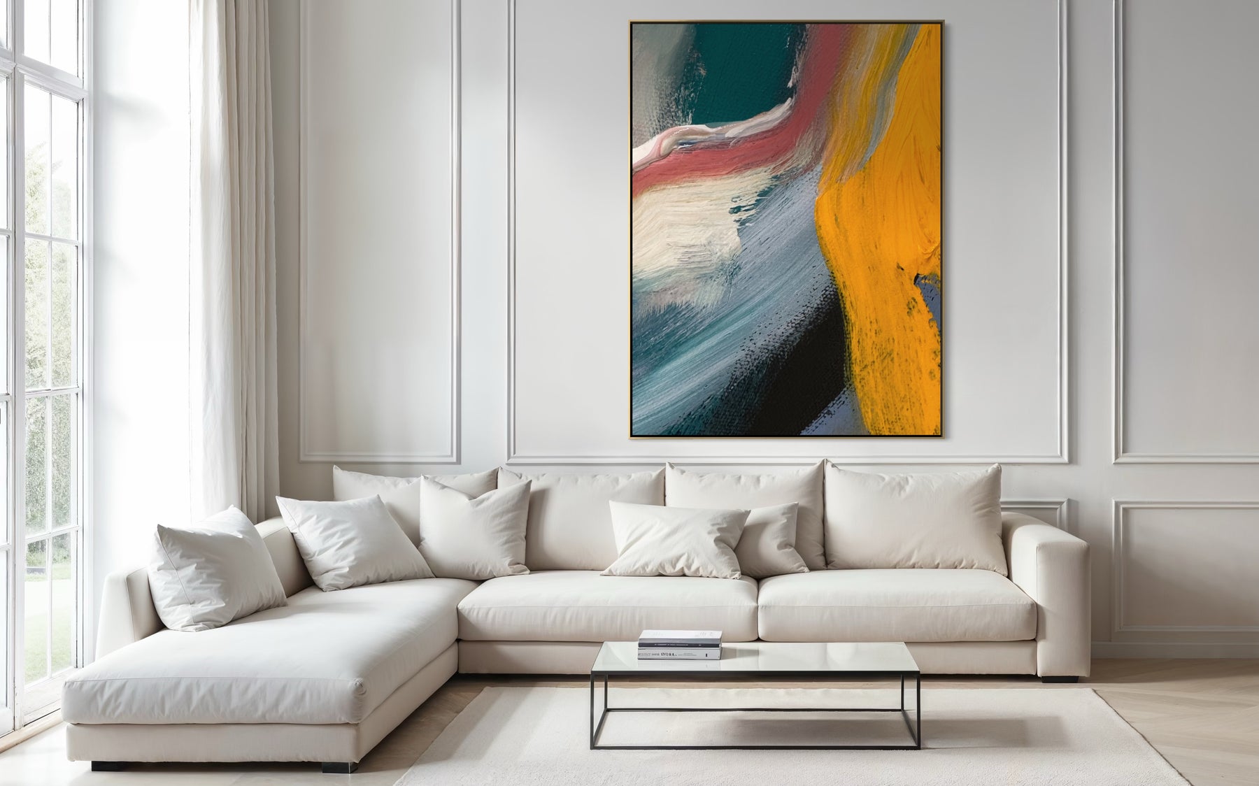 A 60 × 40 inch painting will measure approximately 61.5 × 41.5 inches once framed.
