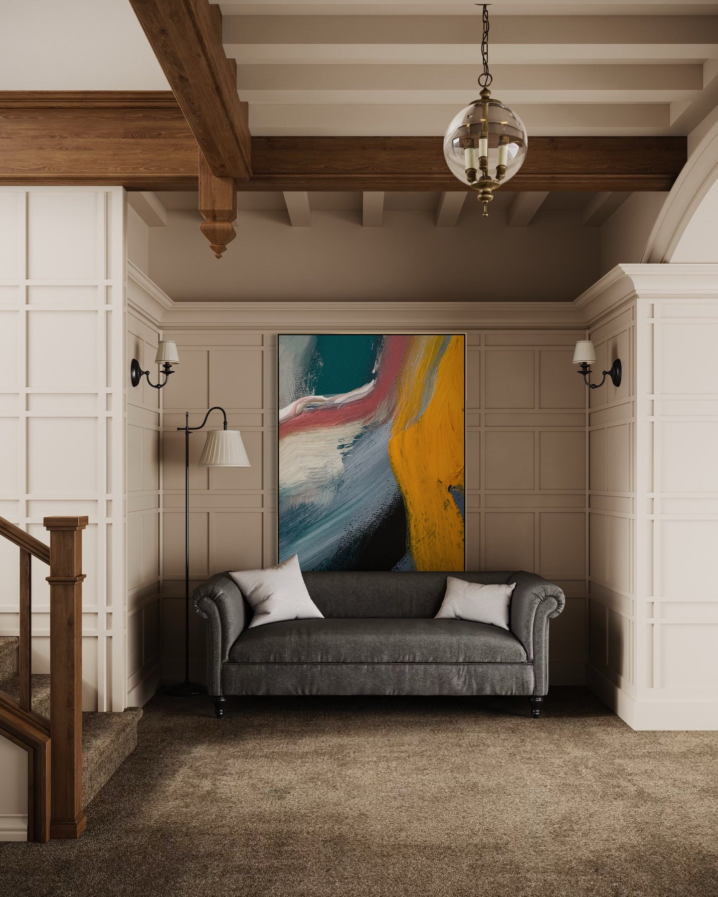 All frames are custom-built in-house and painted to complement your selected finish. Frames are installed after the artwork is completed and include professional hanging wires for immediate display.