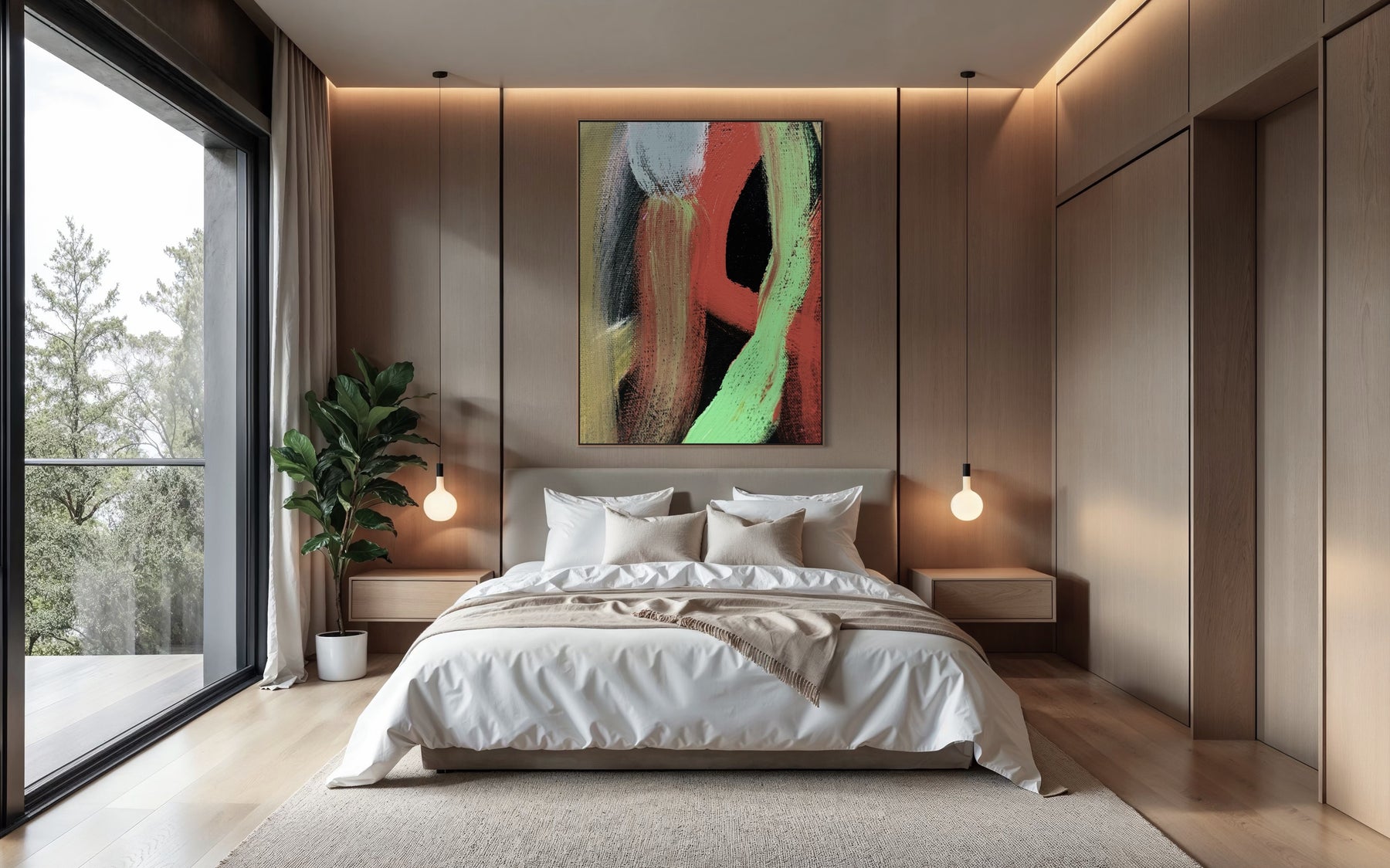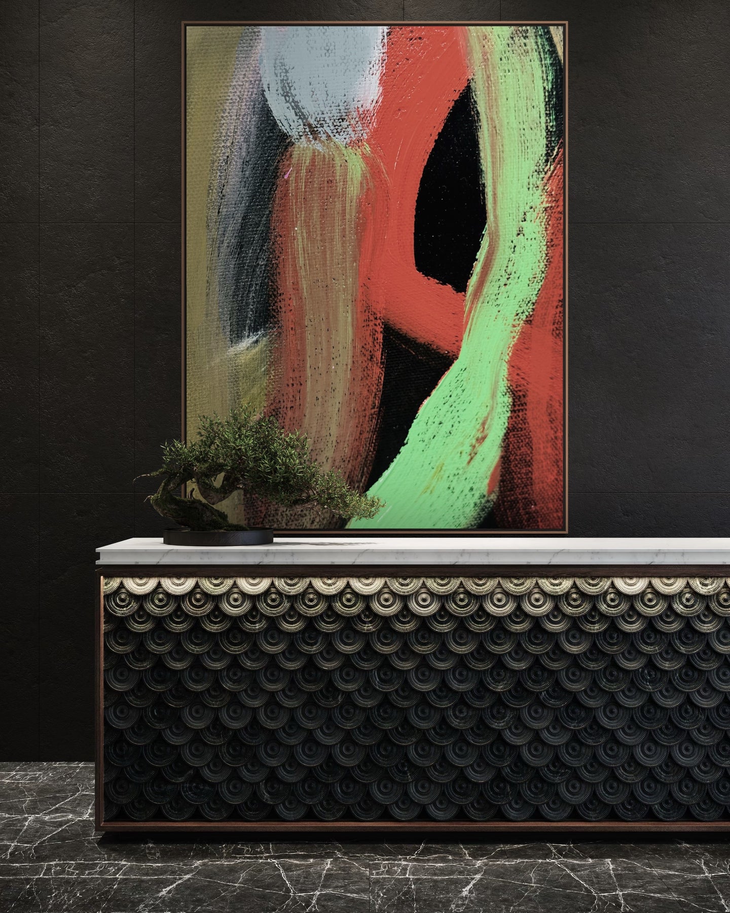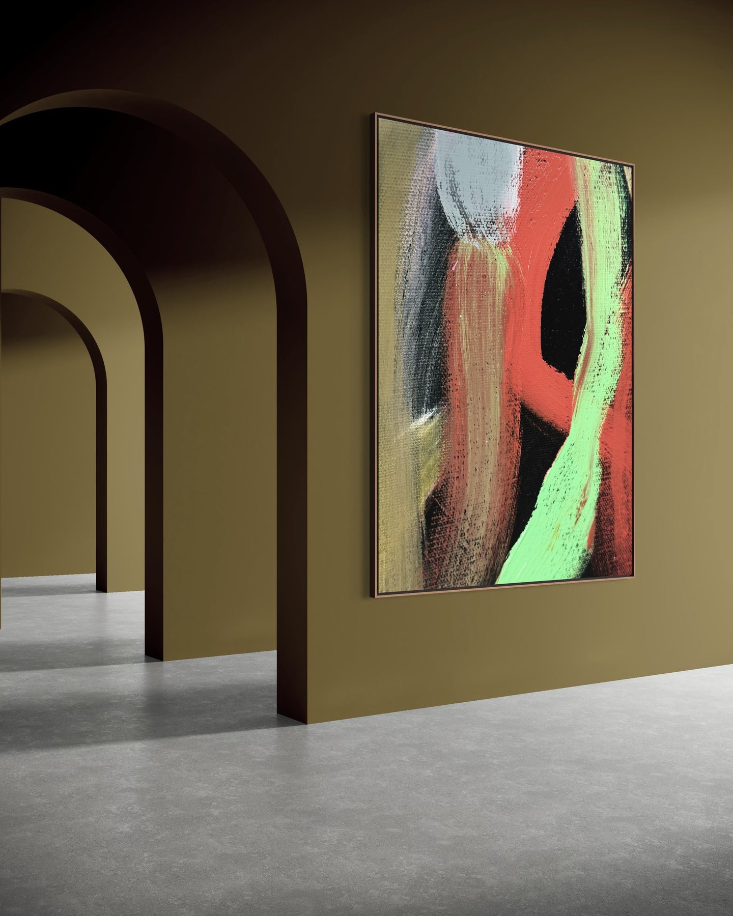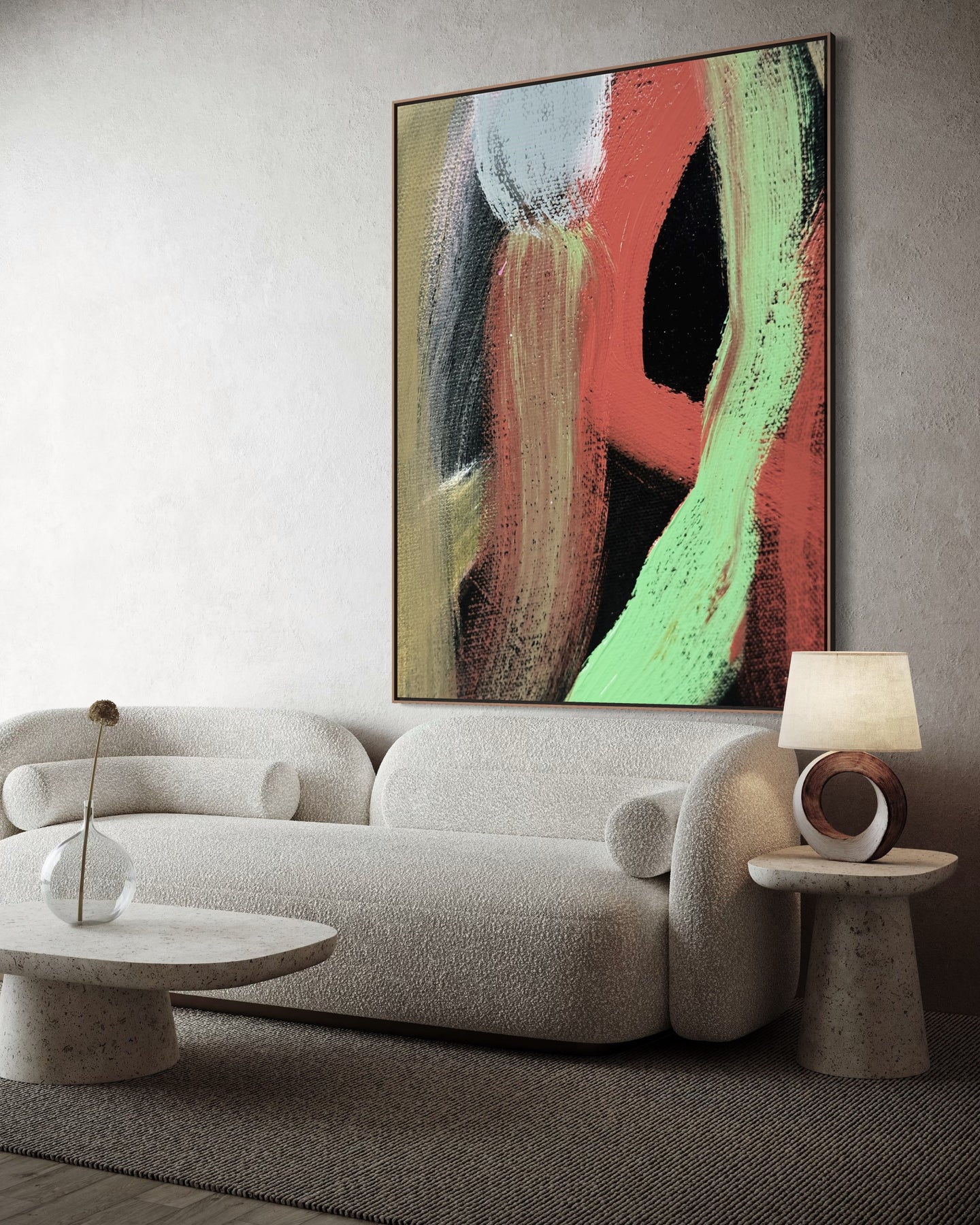 This expressive abstract painting explores attraction, tension, and the invisible forces that draw energy together. Bold strokes of vibrant red and electric green move around a deep central space, creating a sense of movement, gravity, and emotional intensity. Layered textures and sweeping brushwork give the composition both power and balance, reflecting the dynamic relationship between passion and presence. Created for collectors drawn to bold color relationships and expressive abstraction, this piece brings drama and visual energy to contemporary interiors.