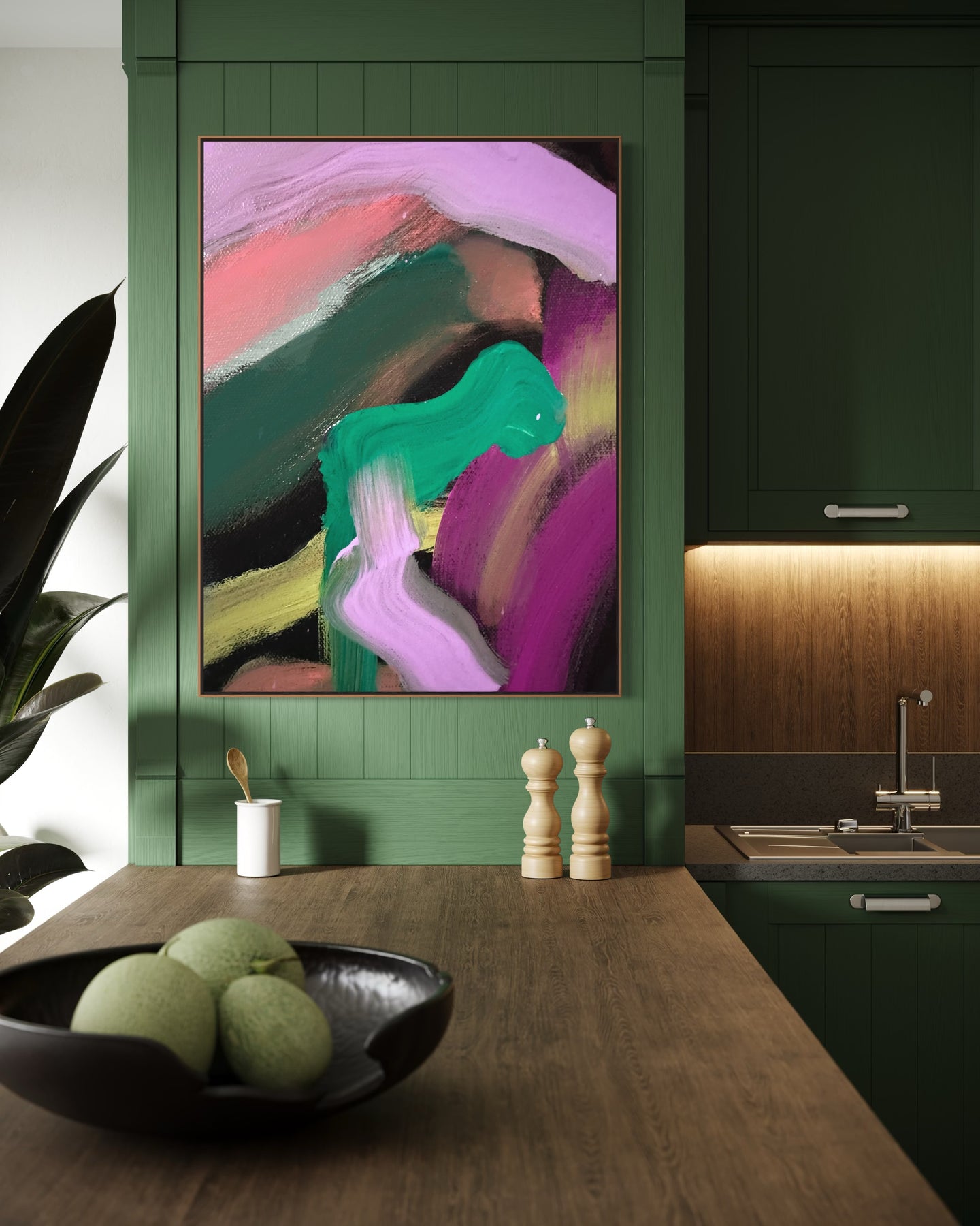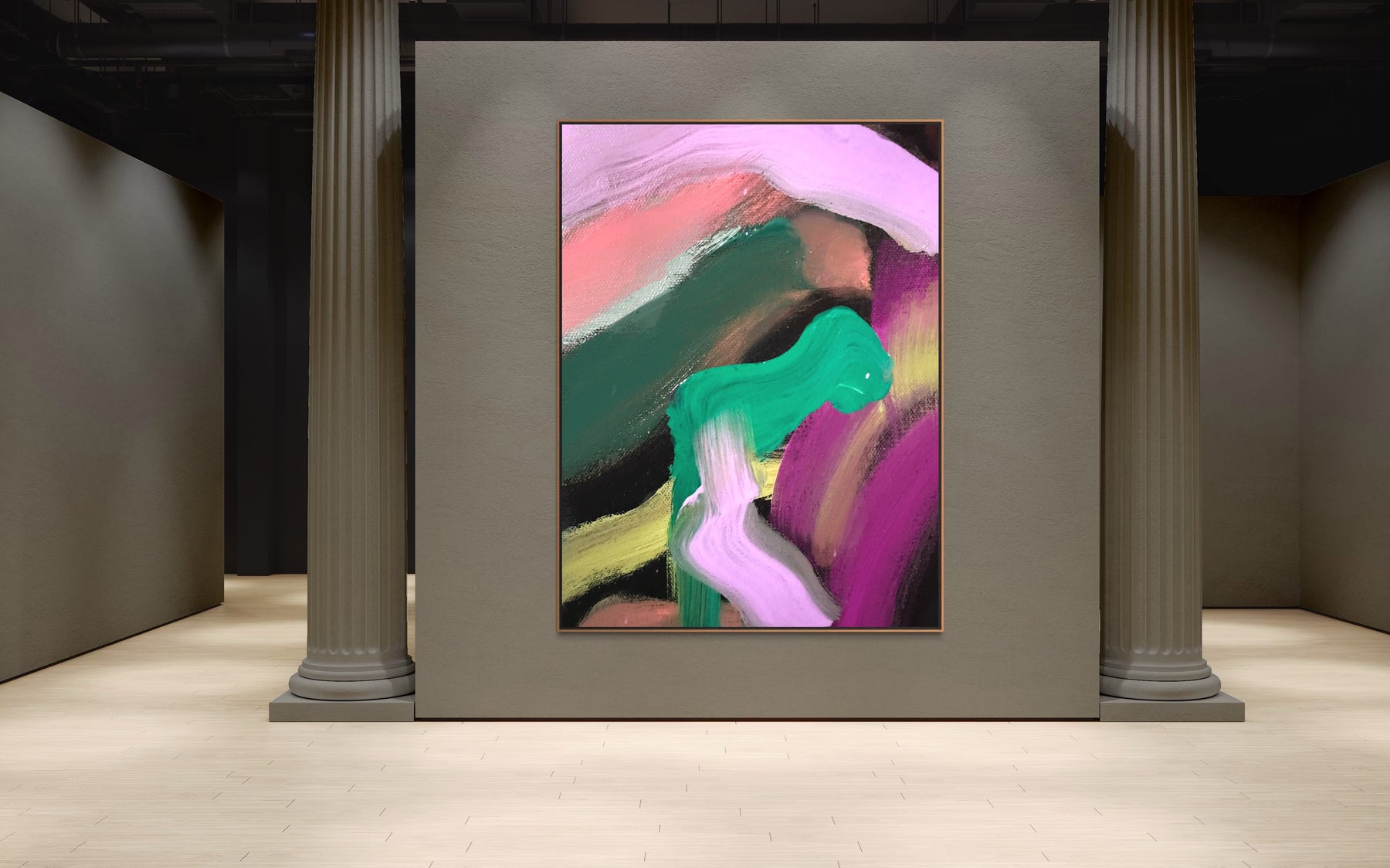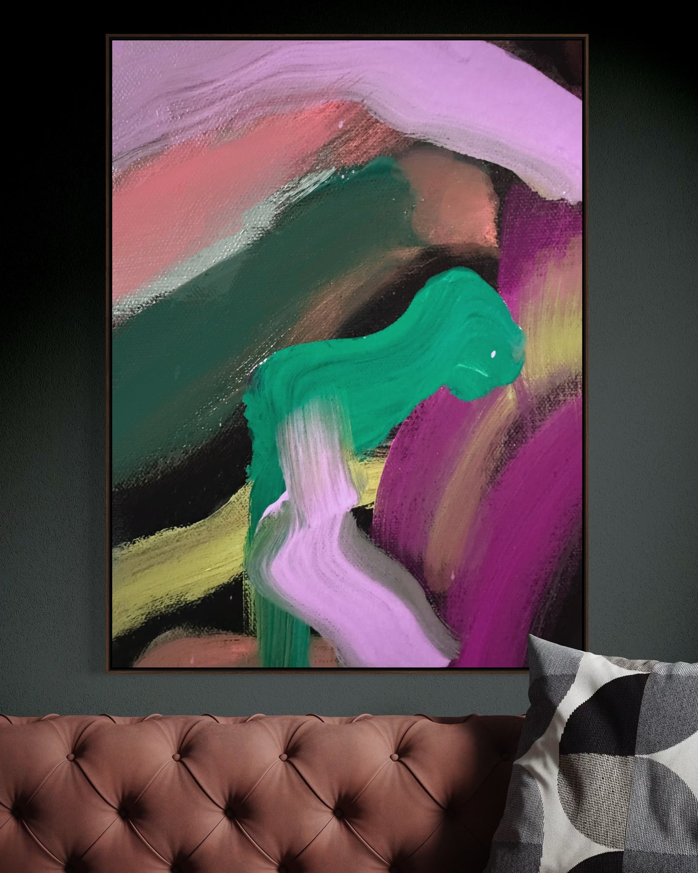 A 60 × 40 inch painting will measure approximately 61.5 × 41.5 inches once framed.