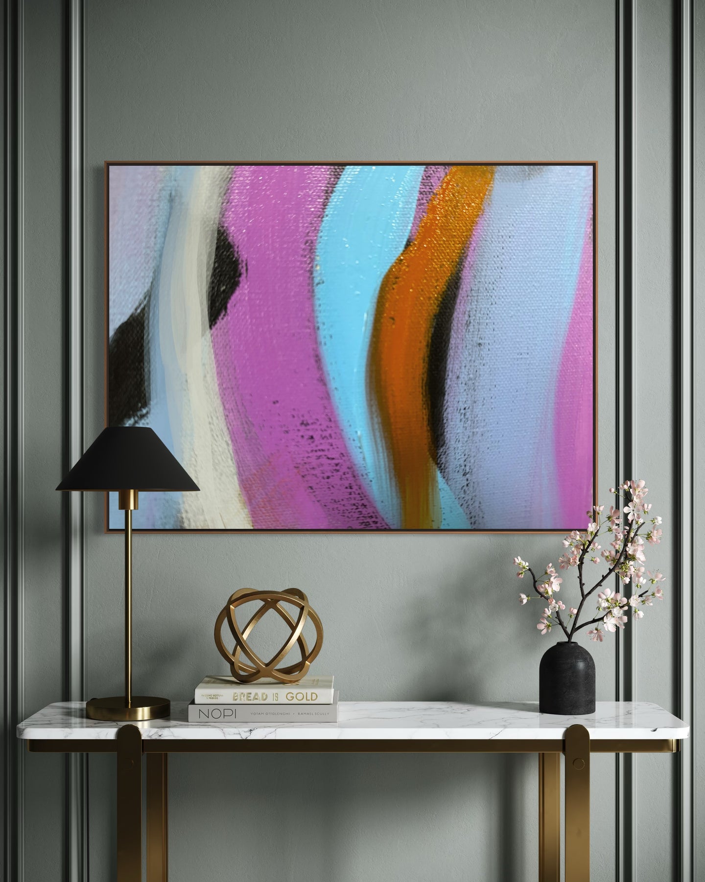 The title "Electric Melody" reflects the painting's ability to evoke a sense of rhythmic flow and powerful emotion, much like the pulse of a captivating melody. This piece captures the essence of movement and energy, making it a striking and engaging focal point that brings a touch of modern elegance and vitality to any space. It invites viewers to lose themselves in its vibrant world and feel the dynamic interplay of colors and forms.