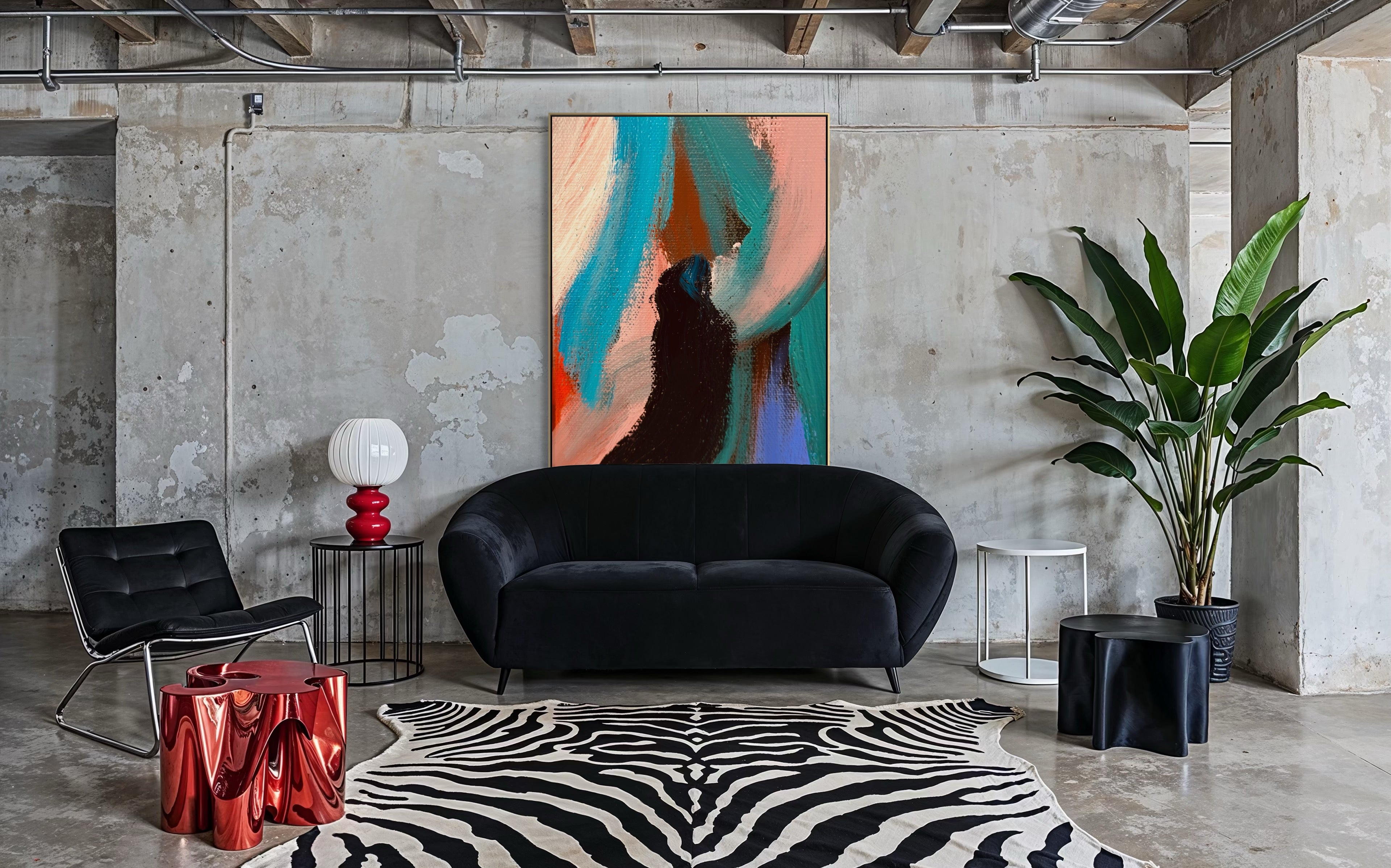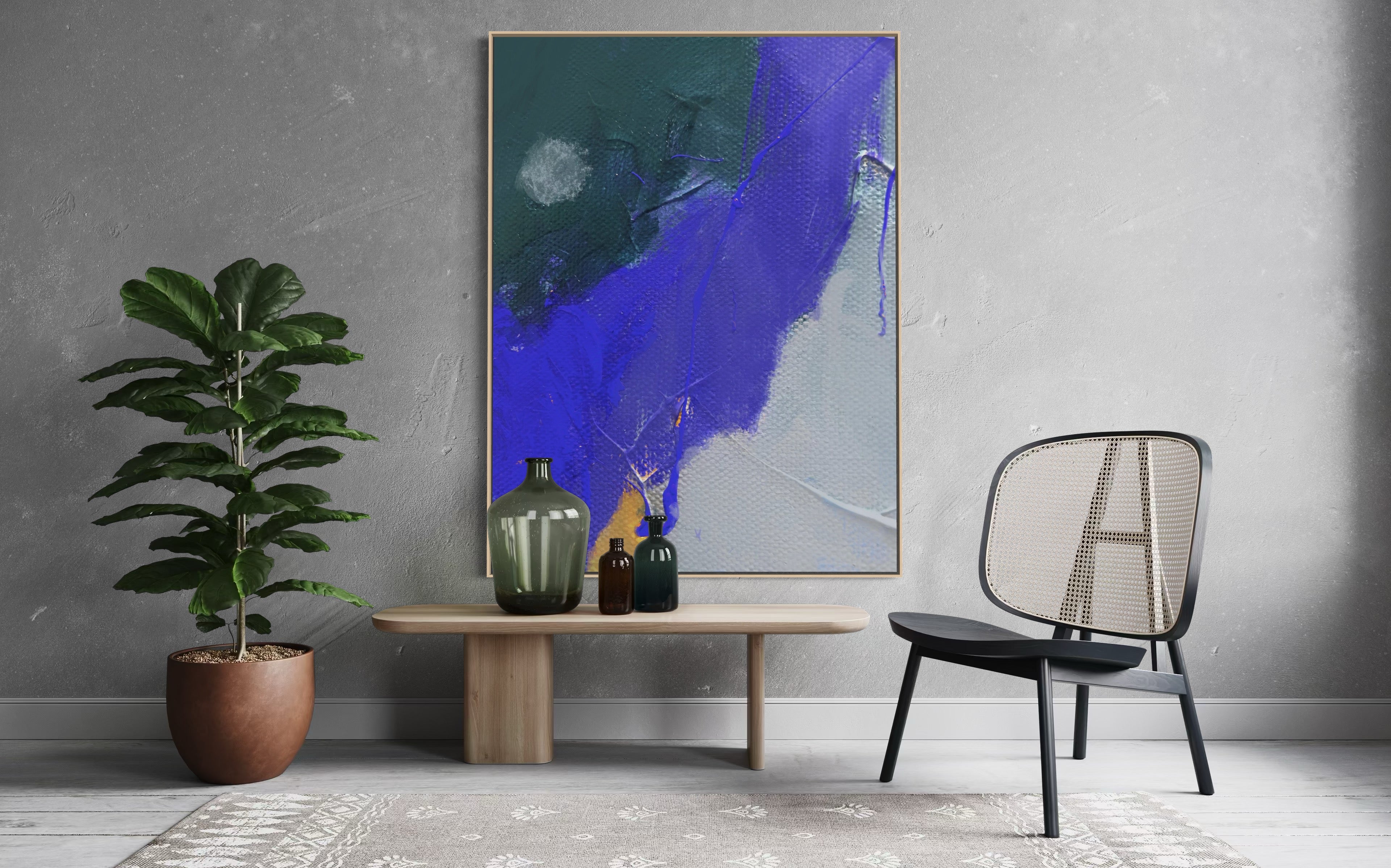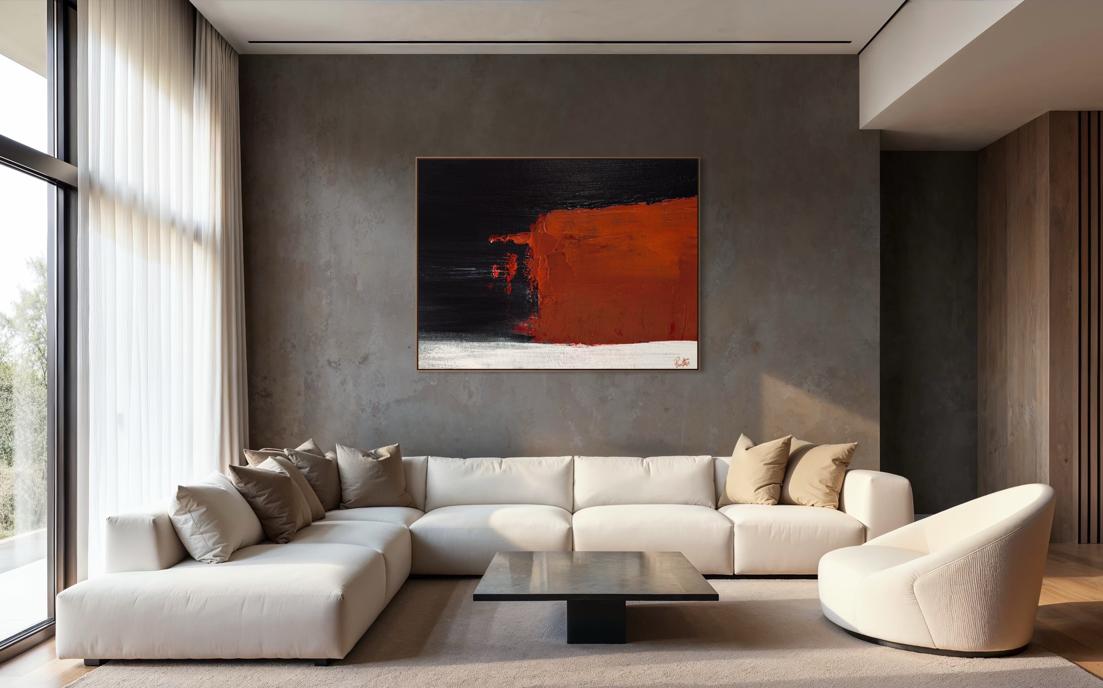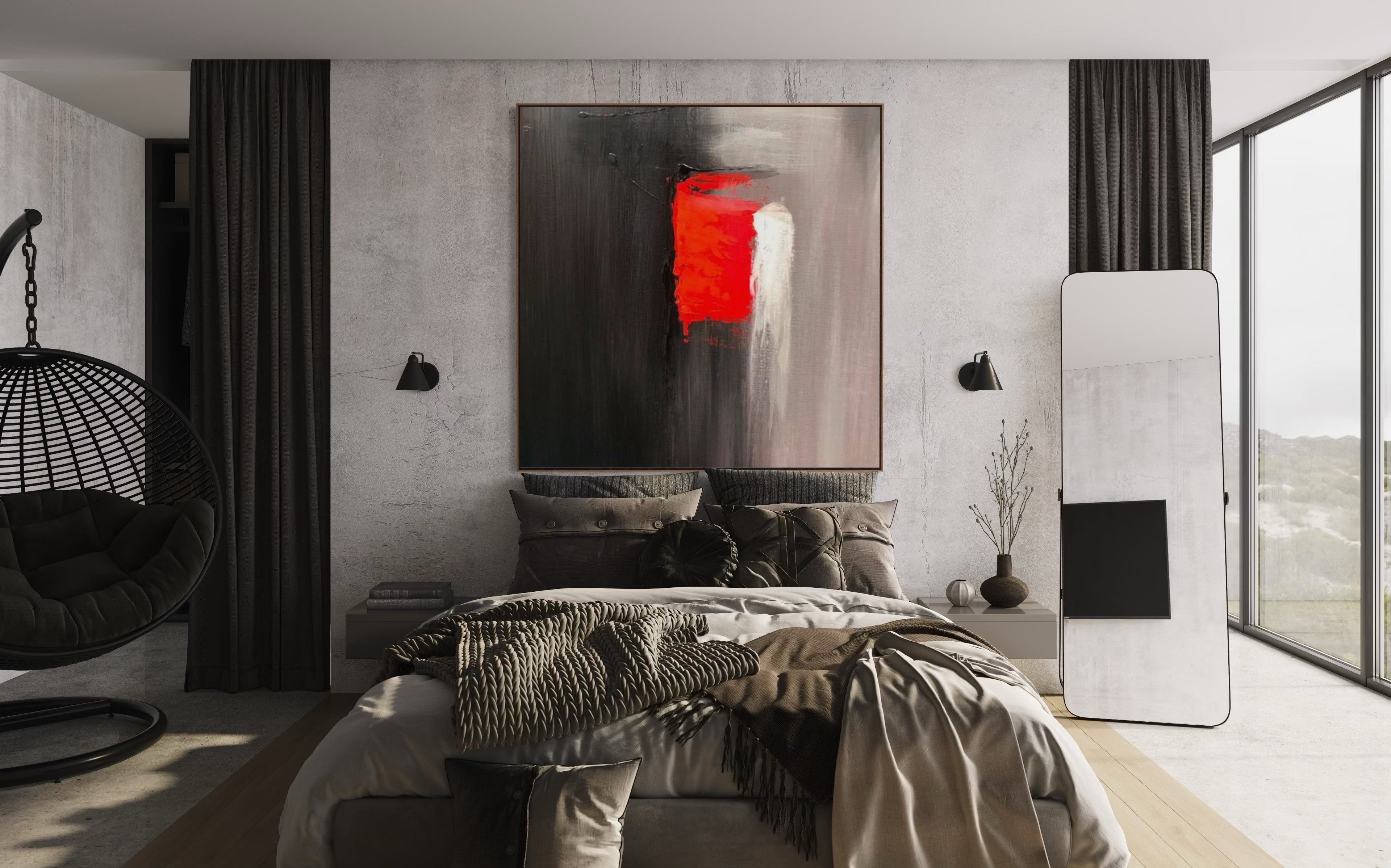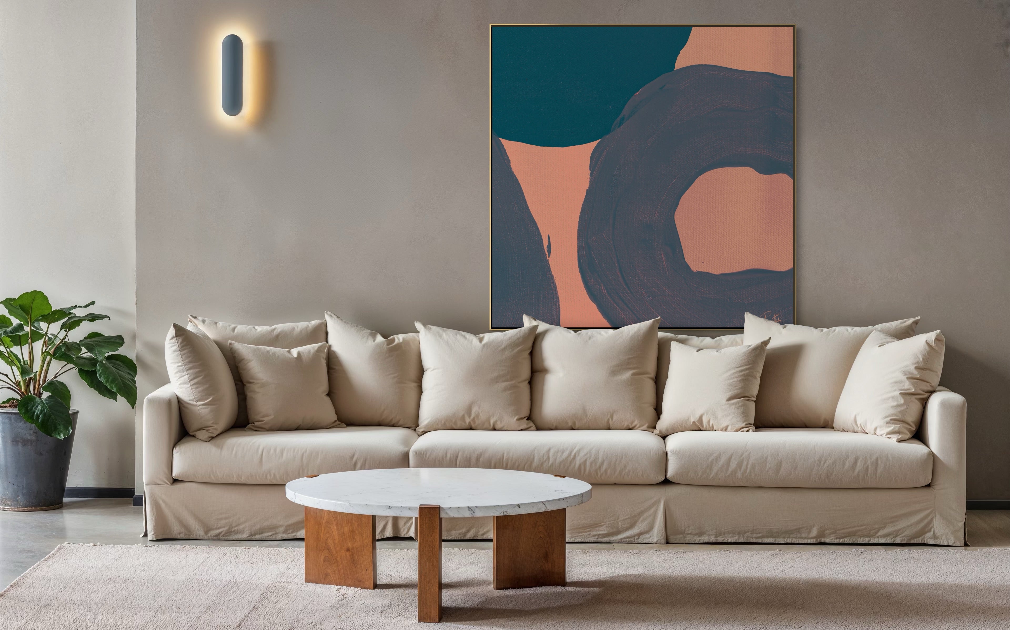 Curated artworks that balance cool greys and soft neutrals with warmth, movement, and timeless sophistication.