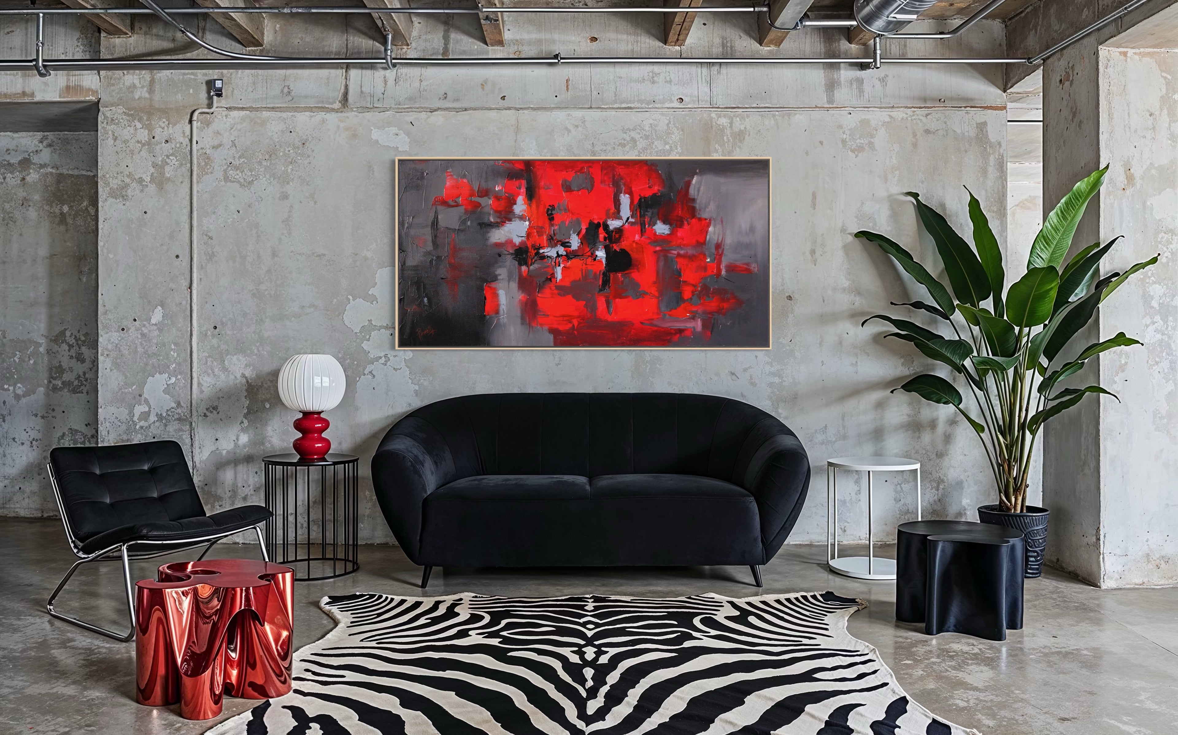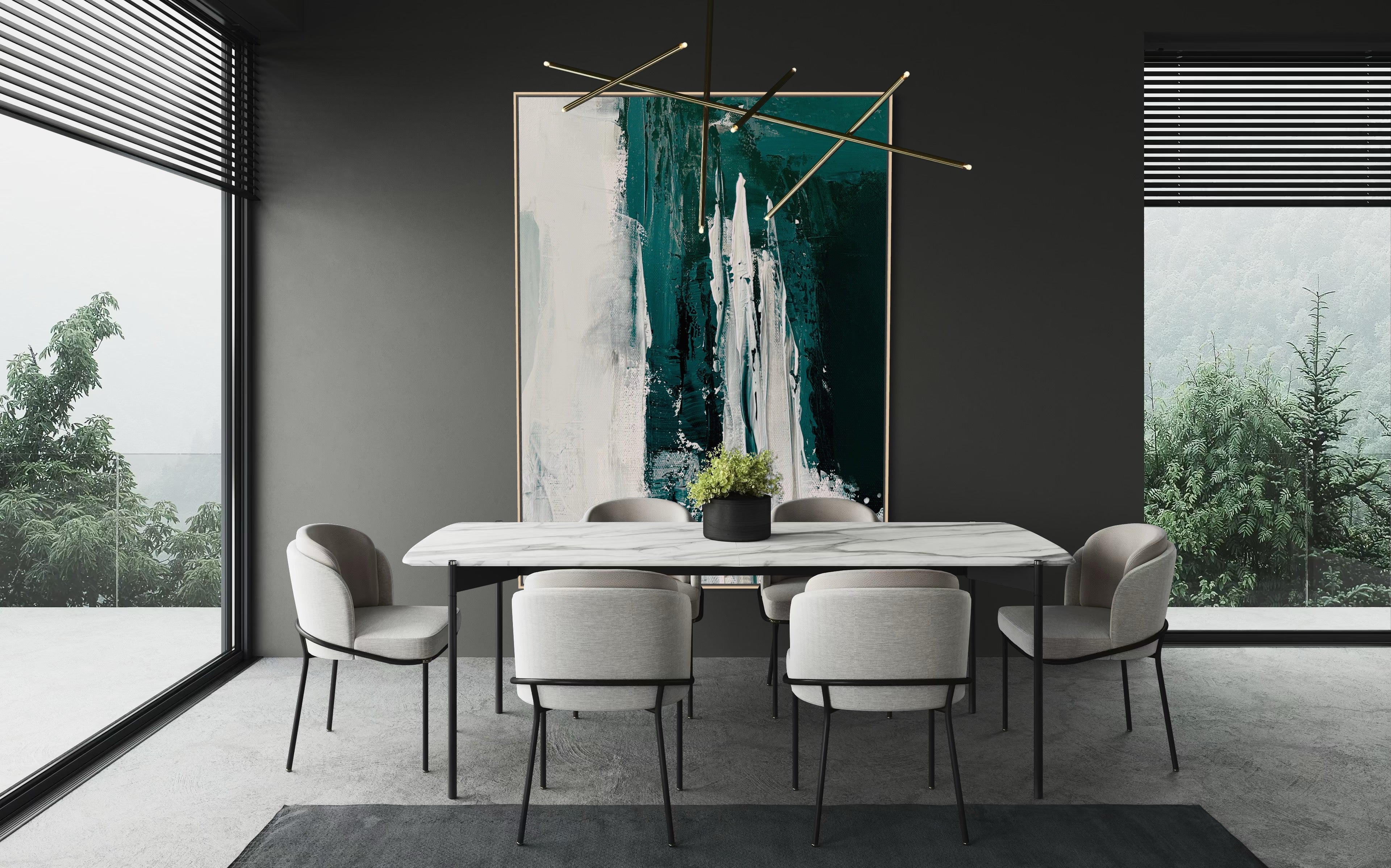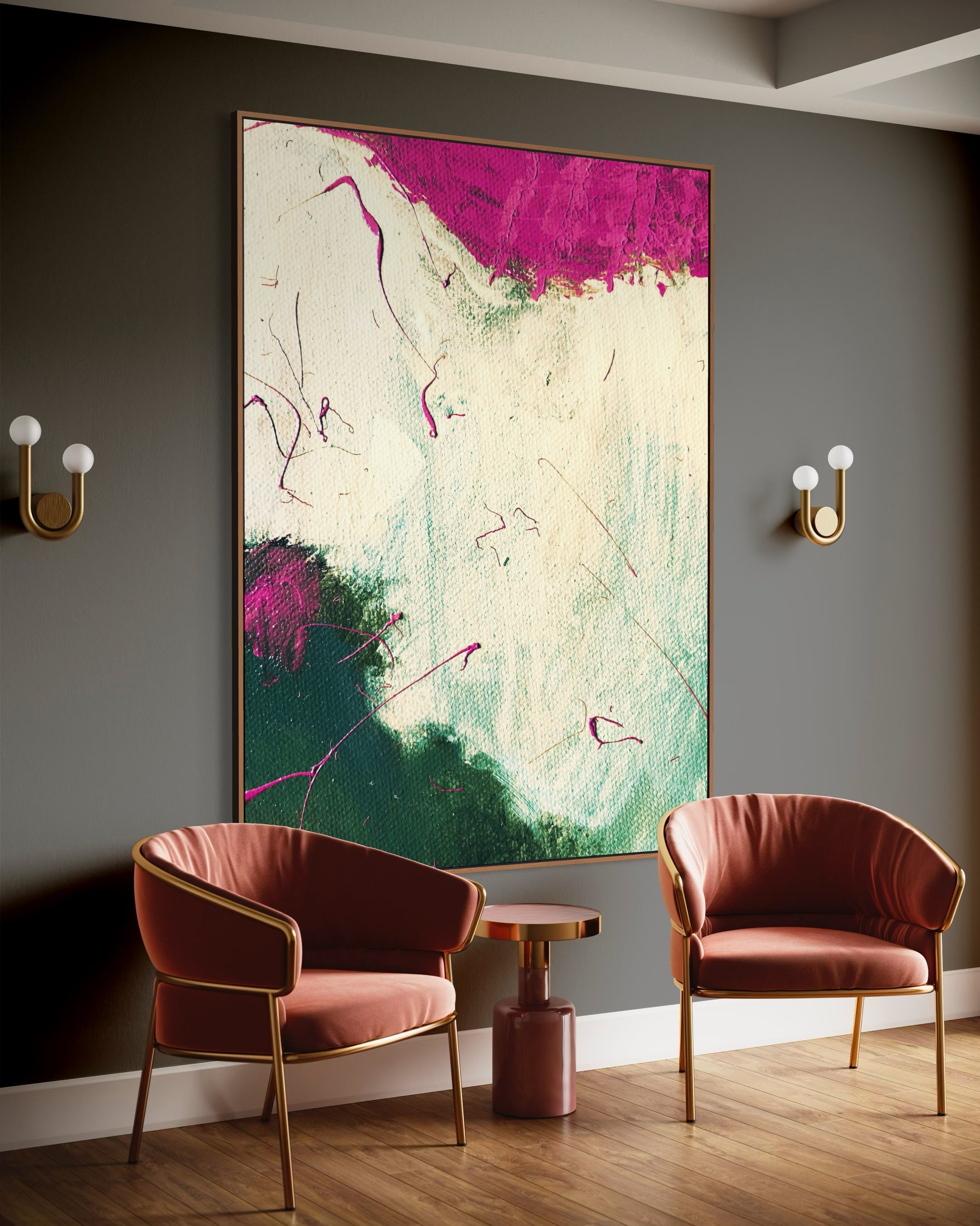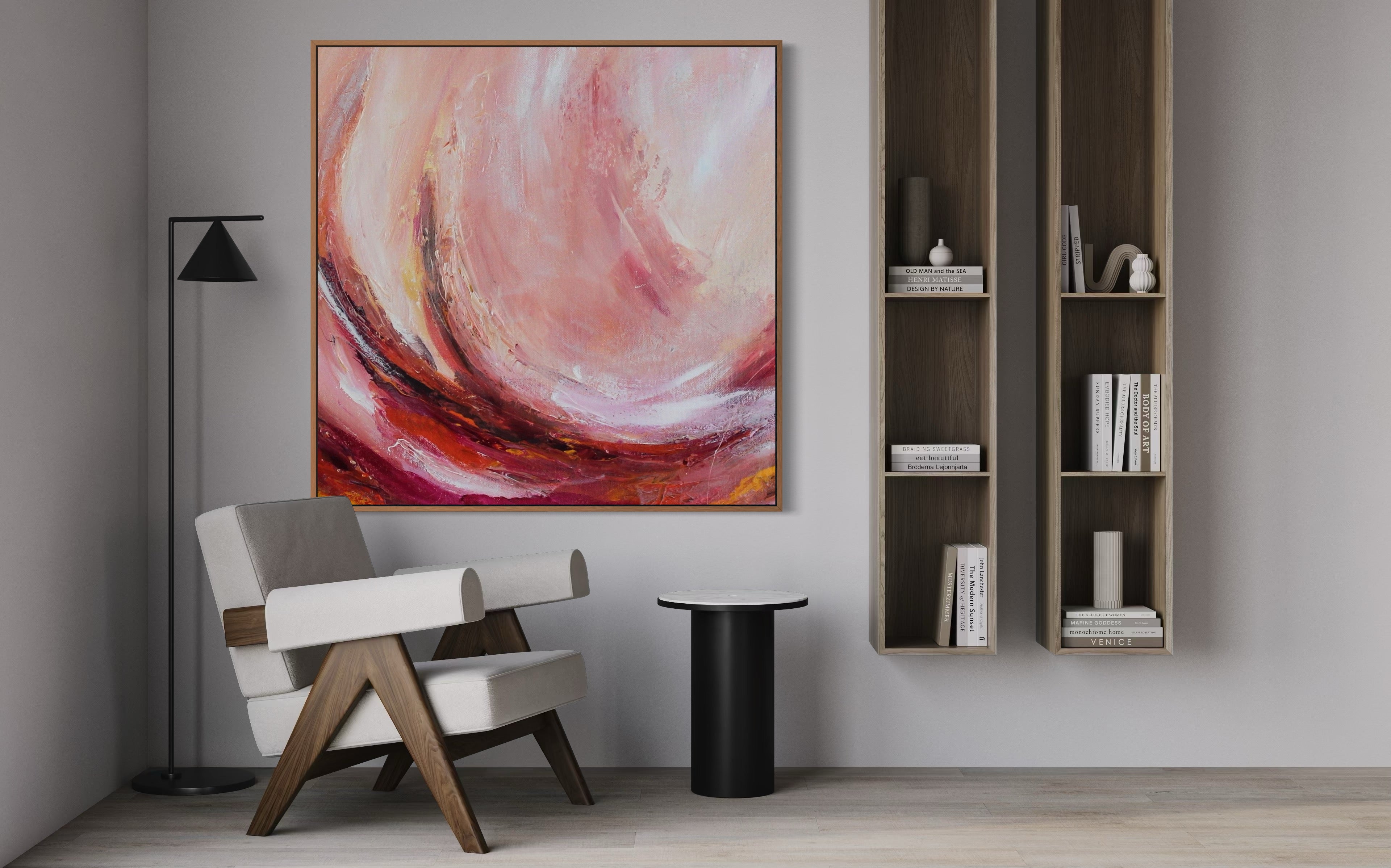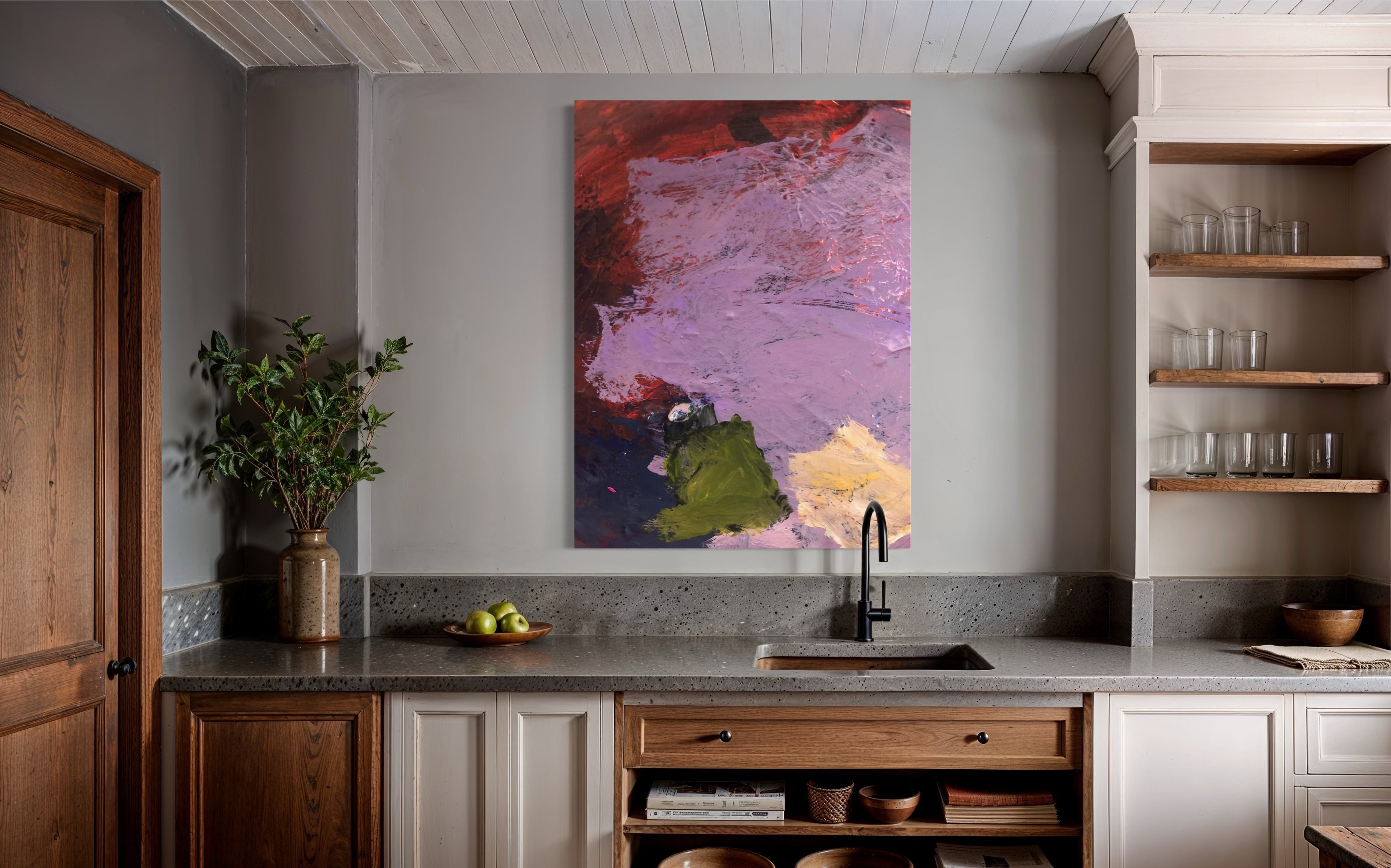 Curated artworks that balance cool greys and soft neutrals with warmth, movement, and timeless sophistication.