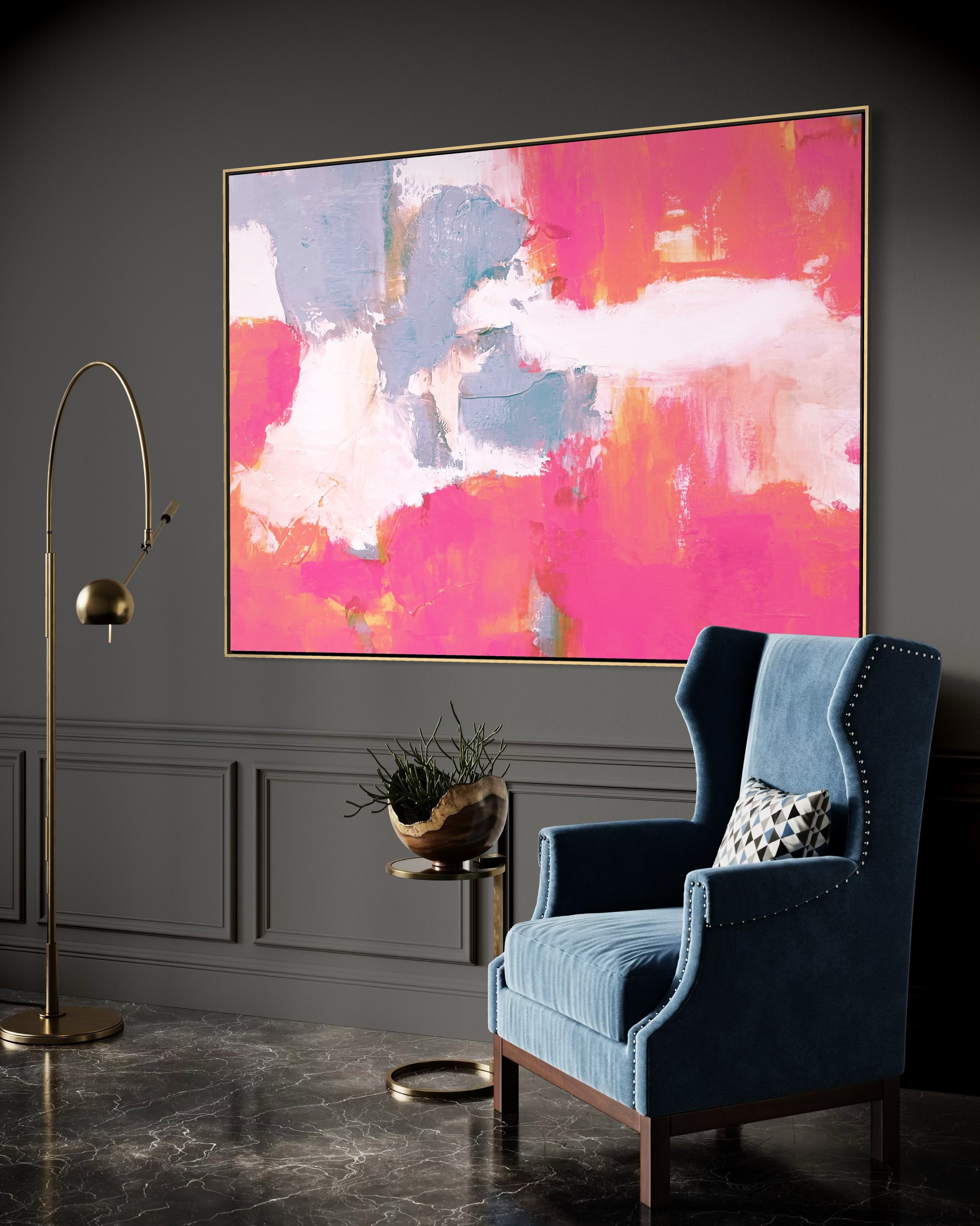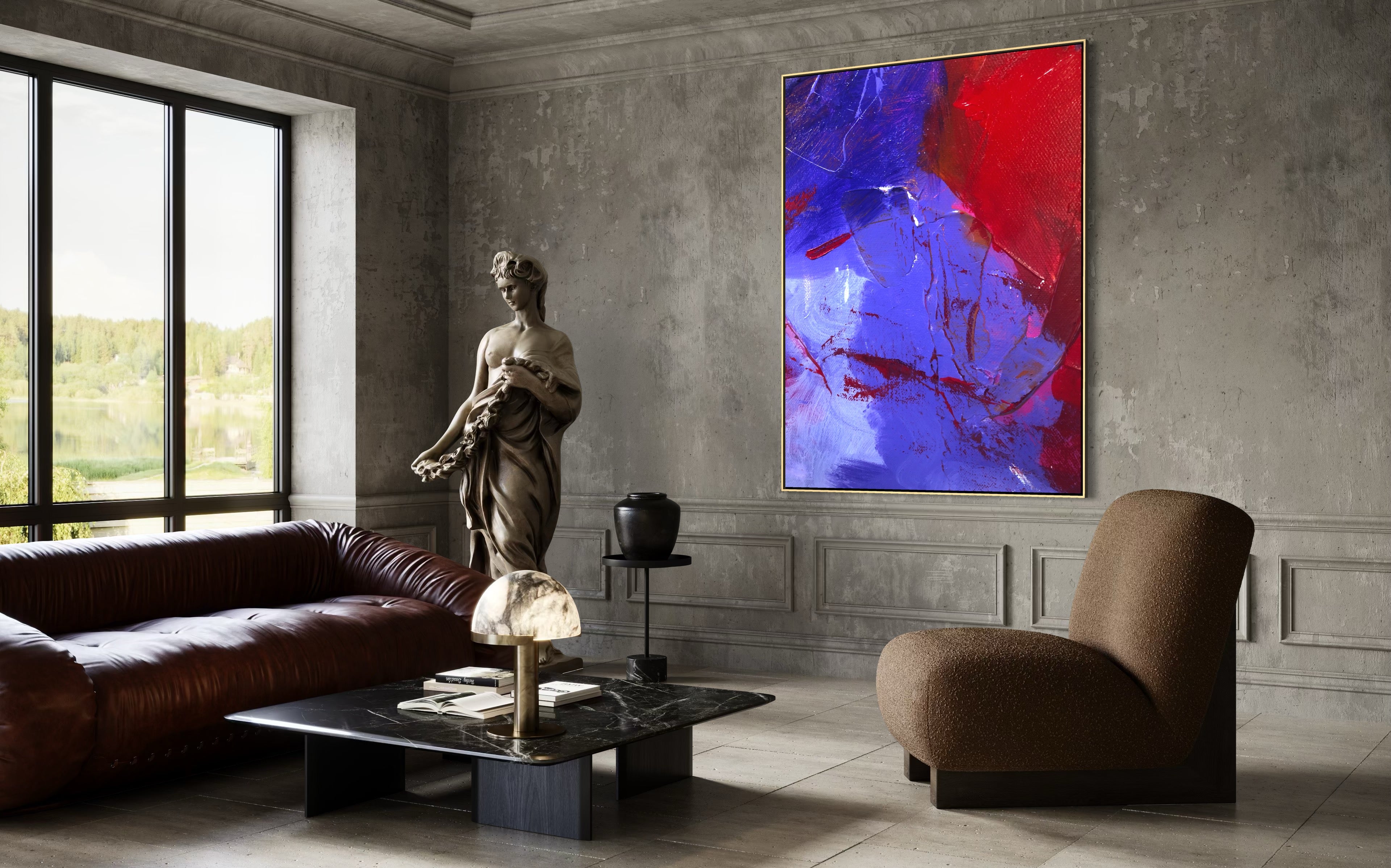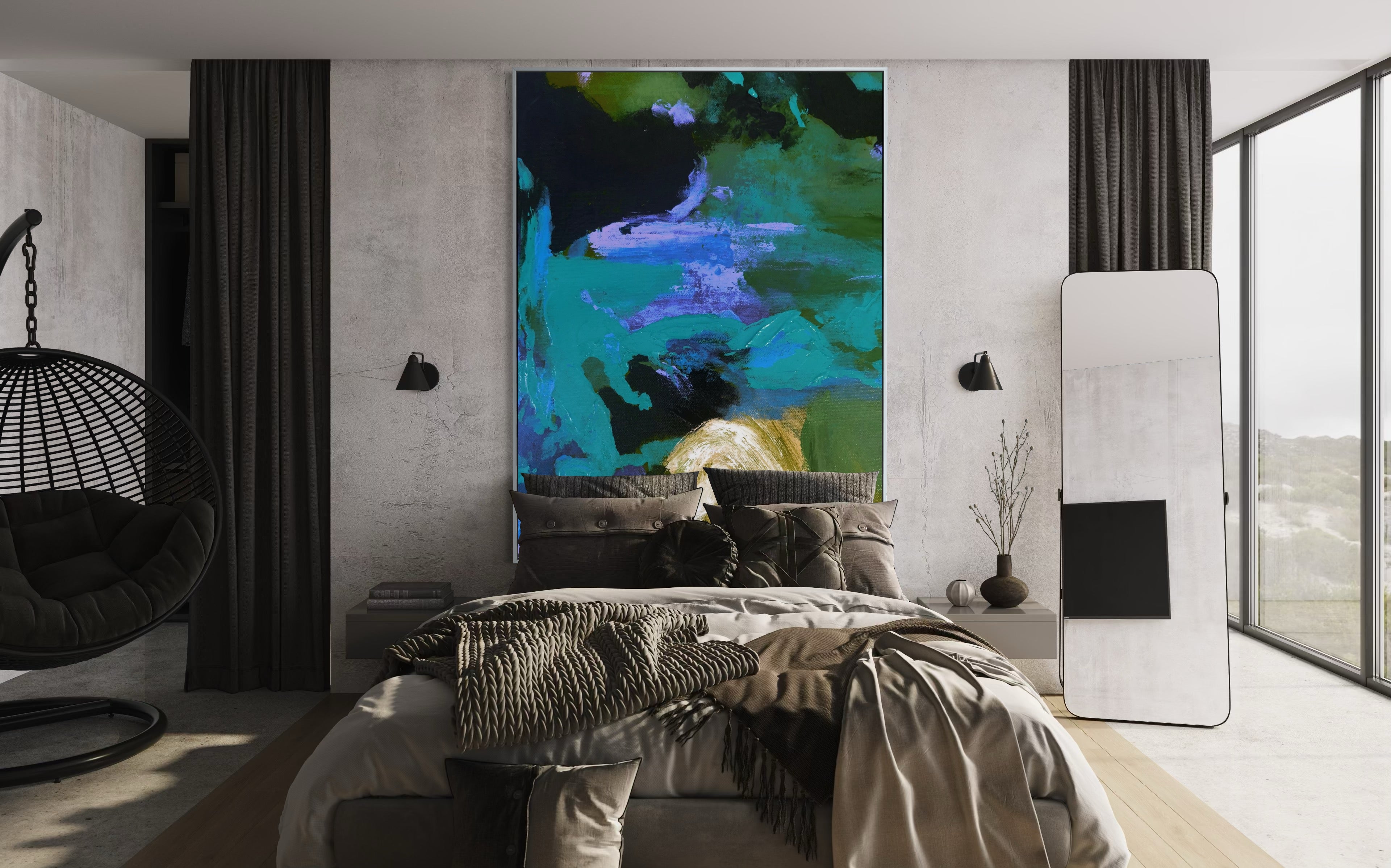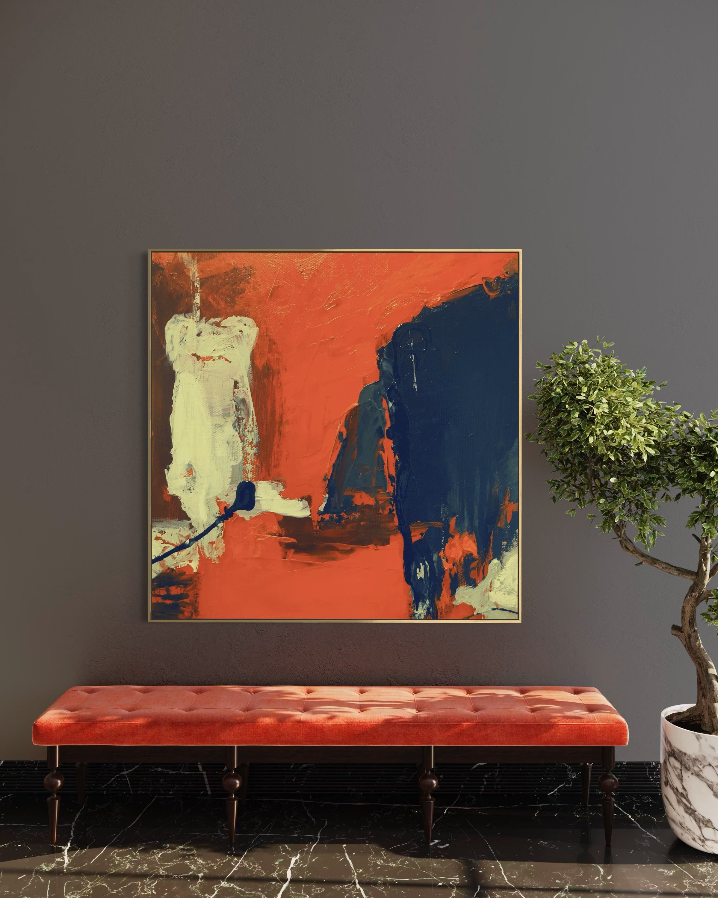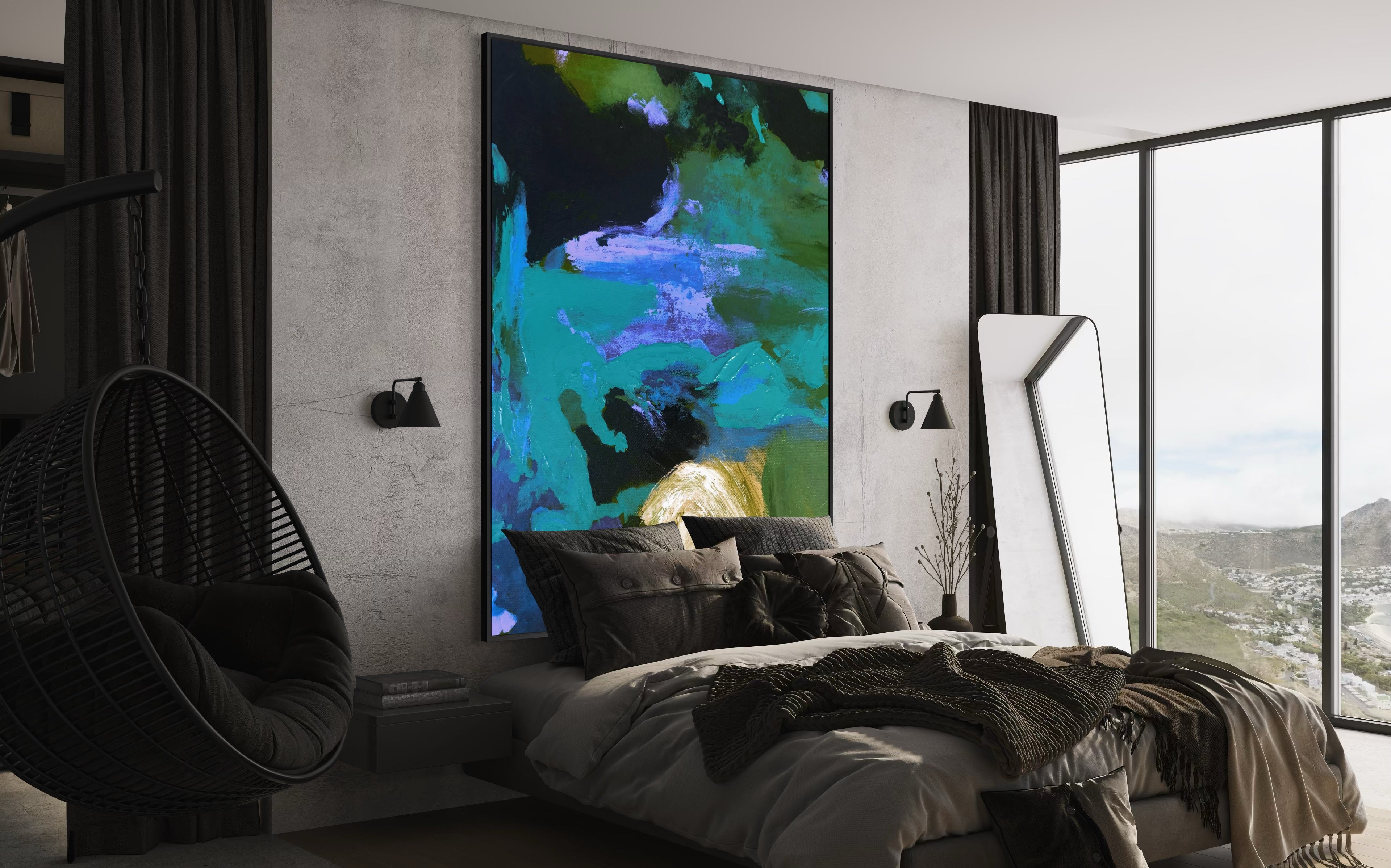 Curated artworks that balance cool greys and soft neutrals with warmth, movement, and timeless sophistication.