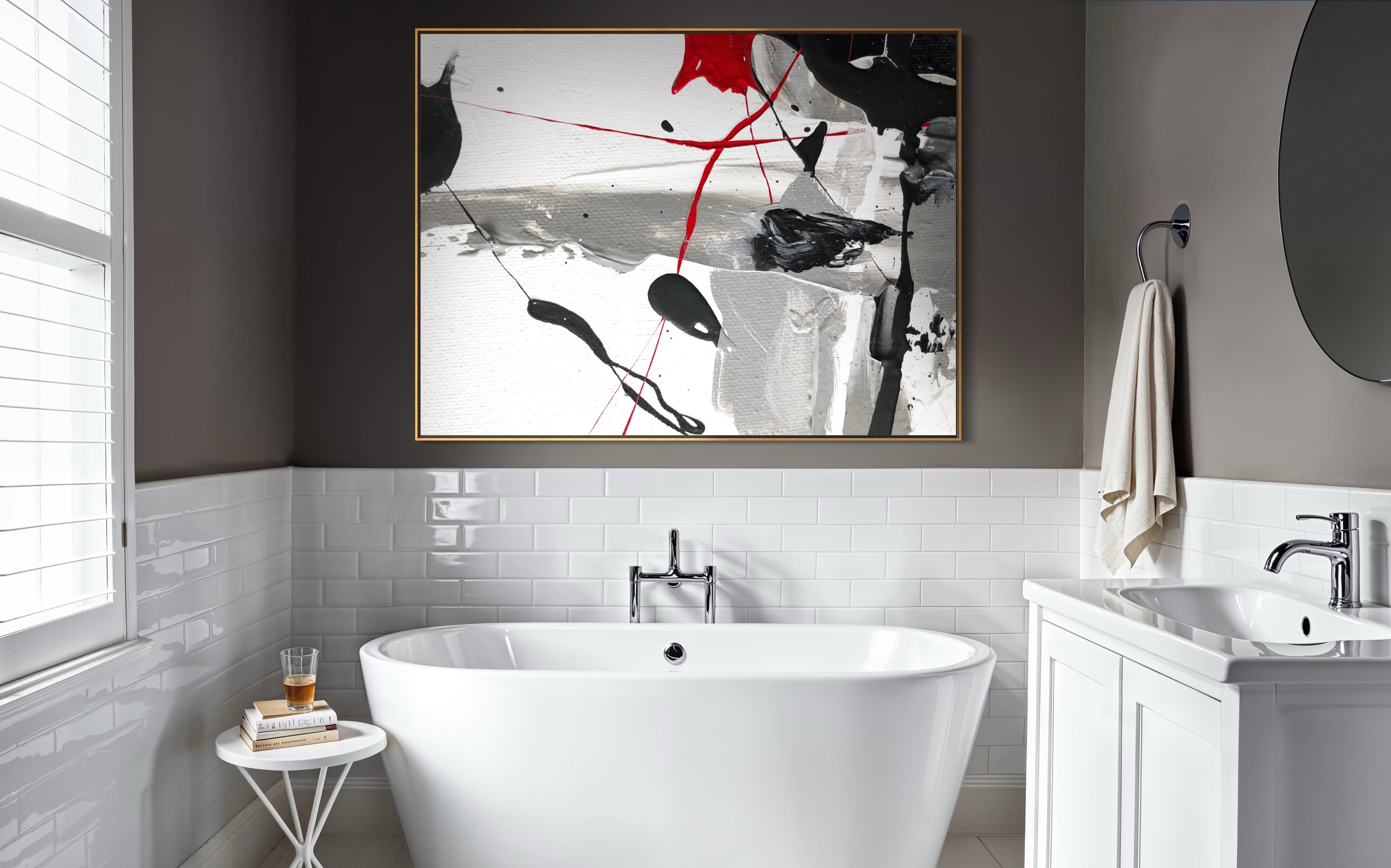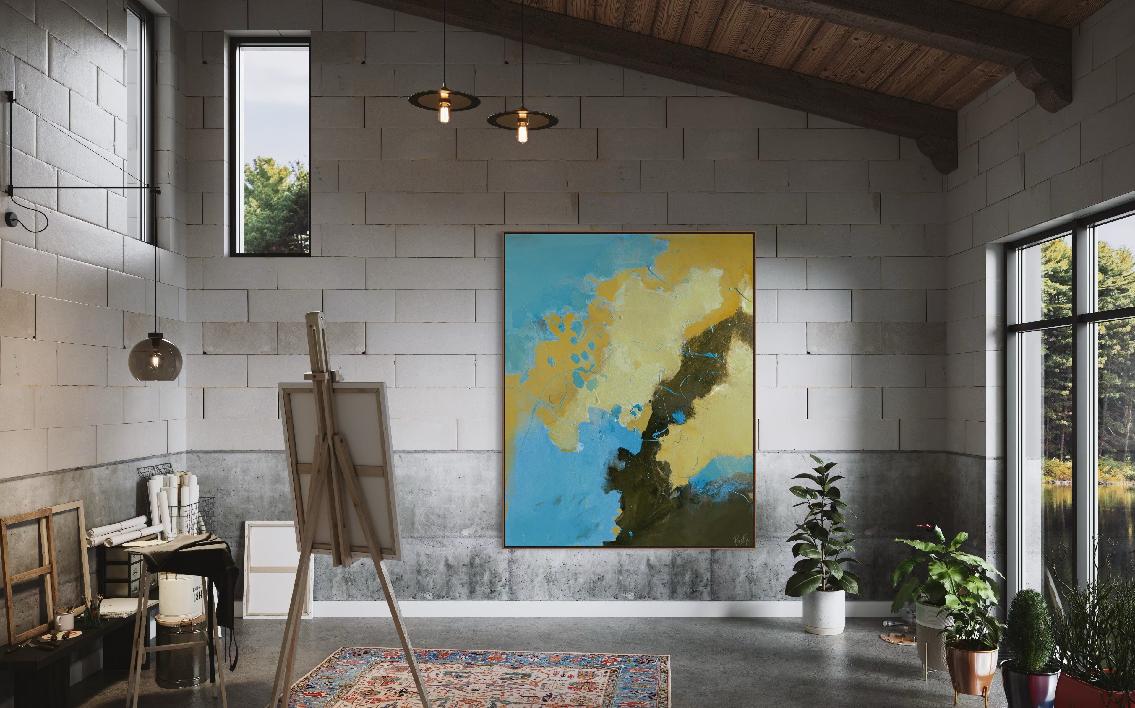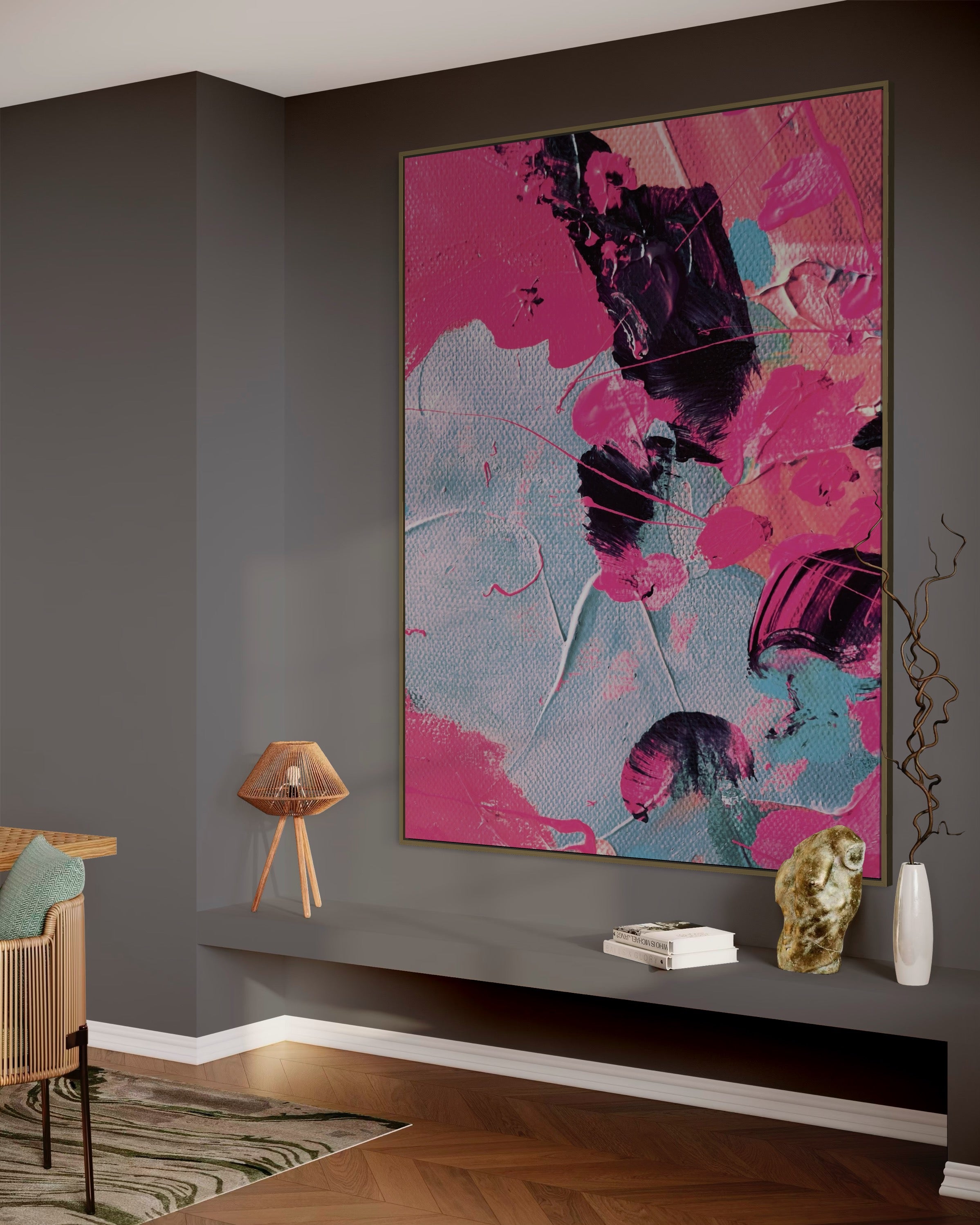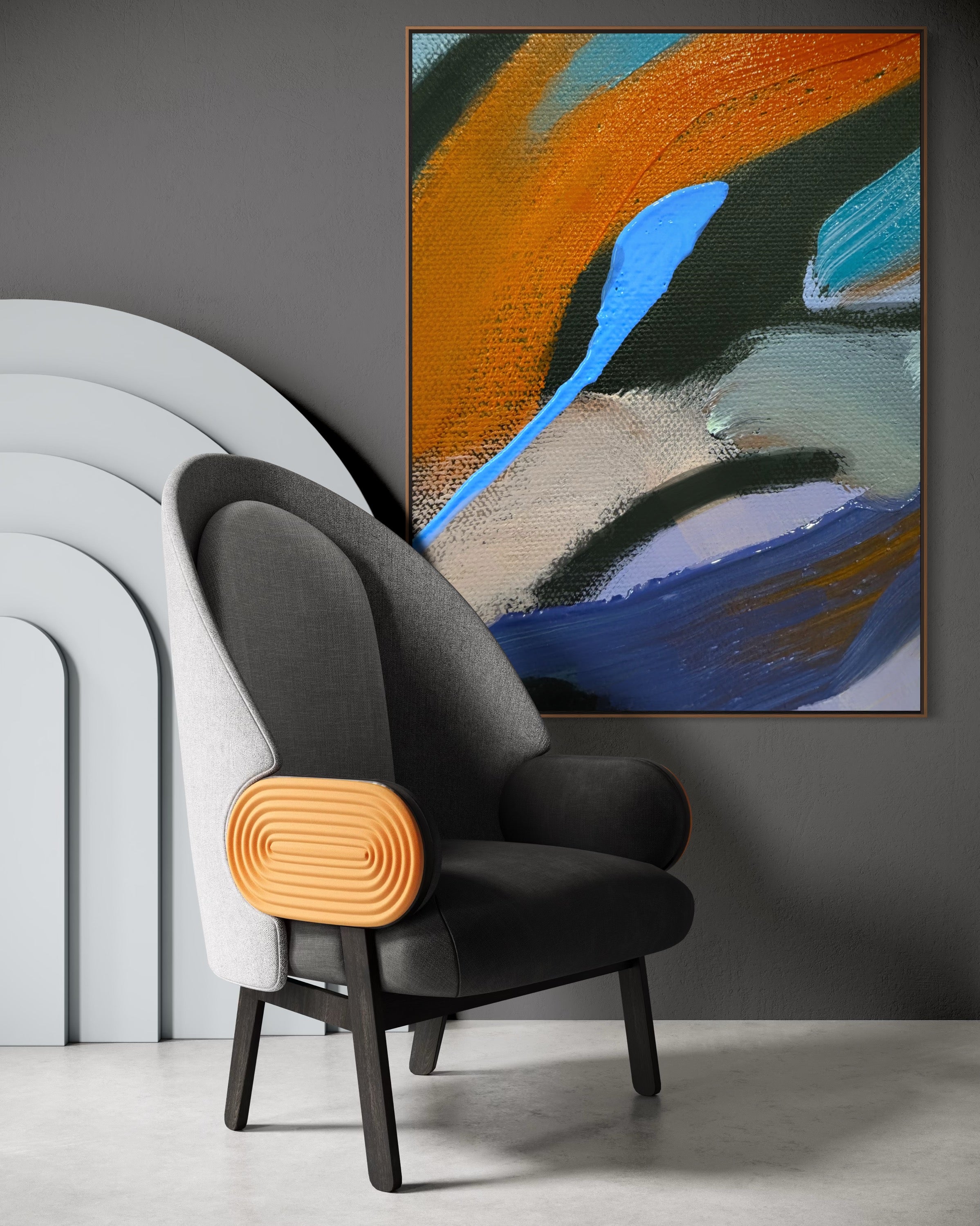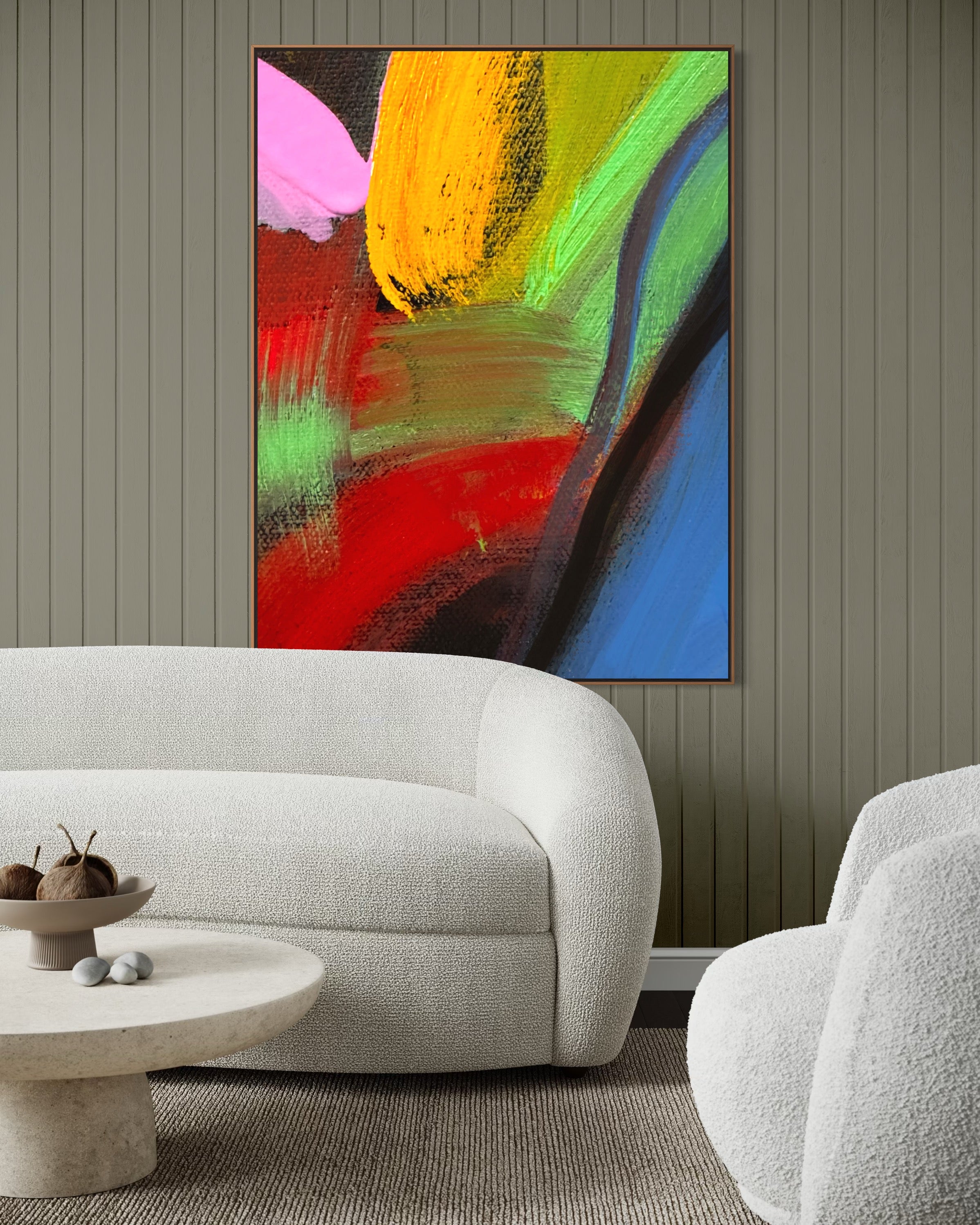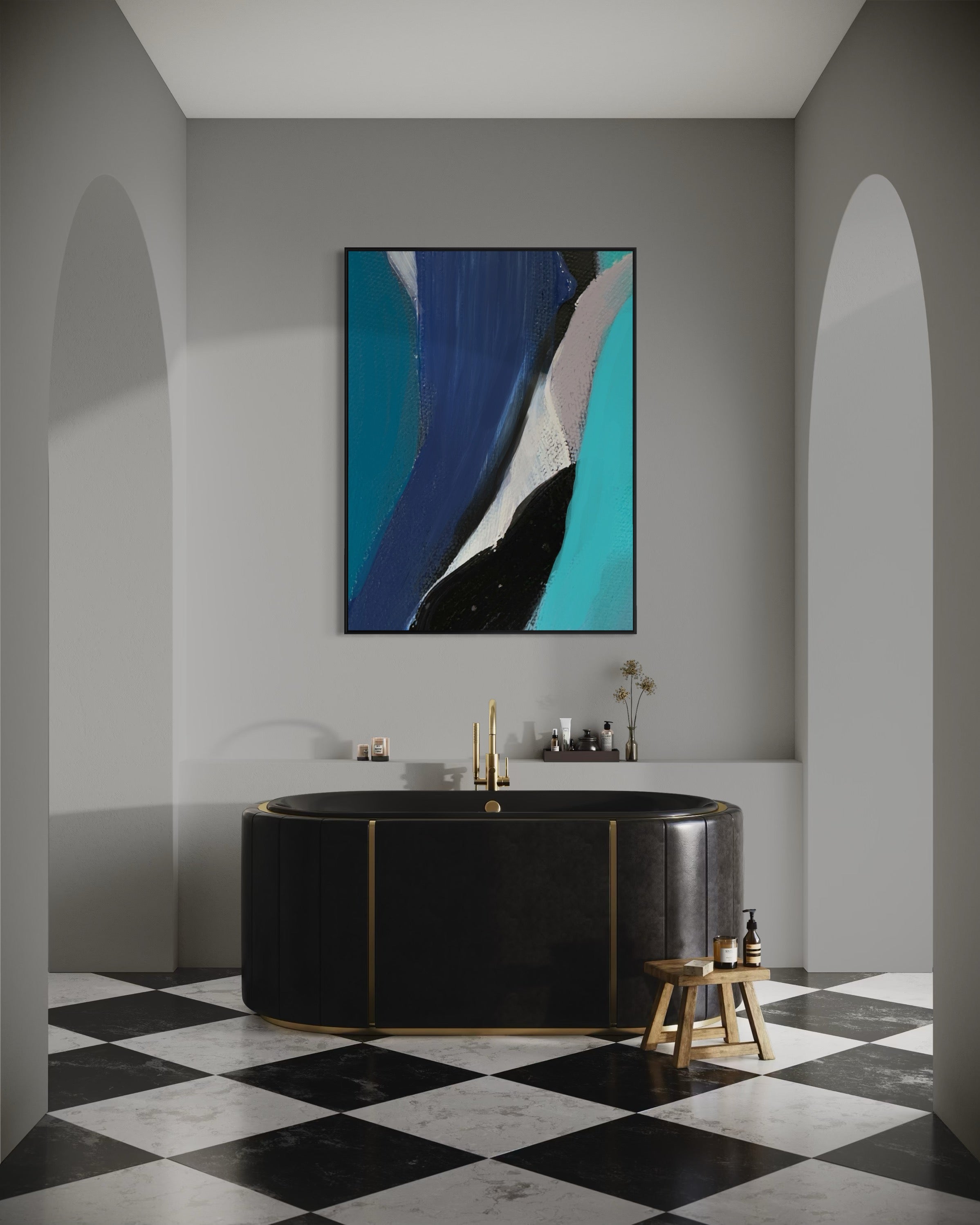 Curated artworks that balance cool greys and soft neutrals with warmth, movement, and timeless sophistication.