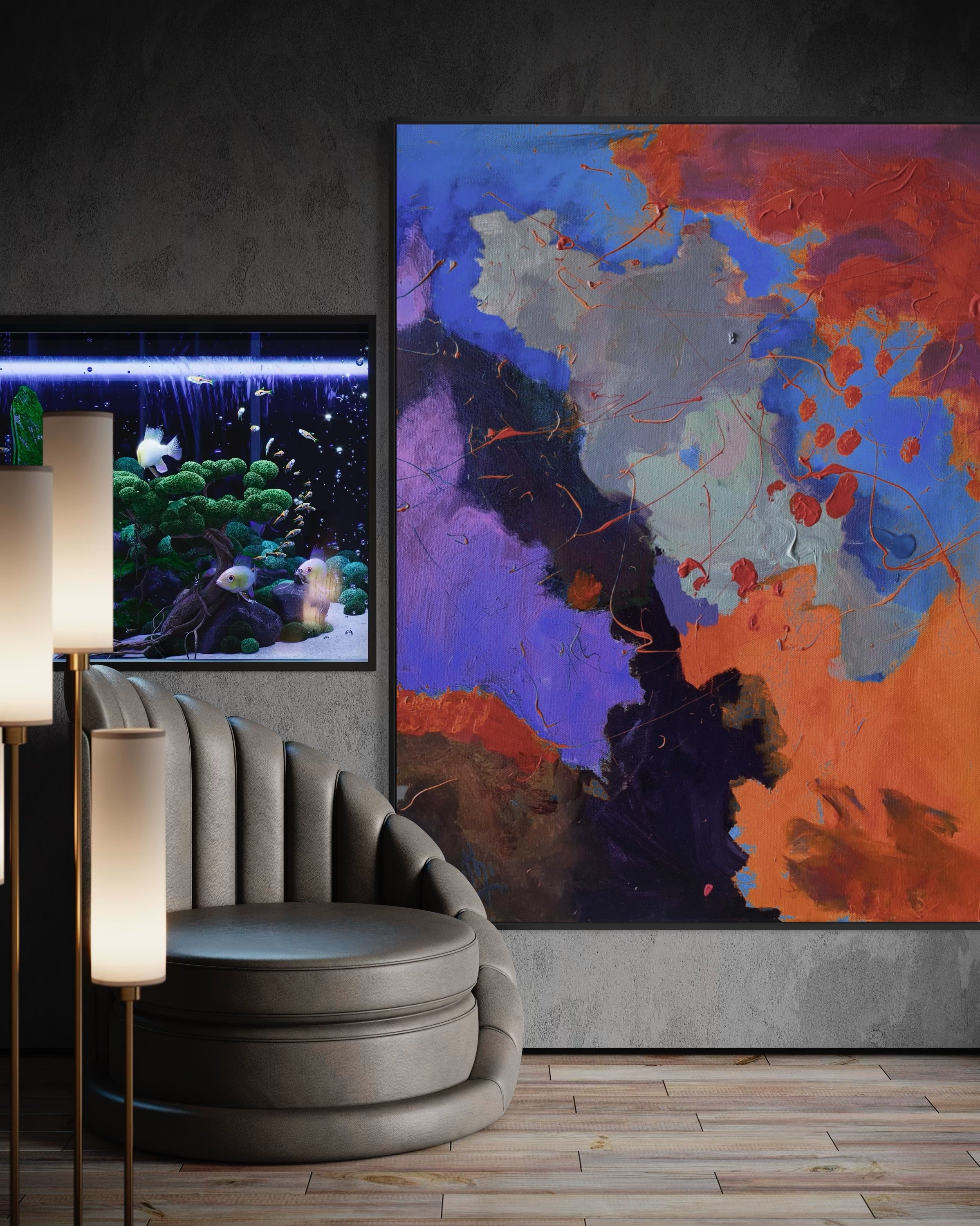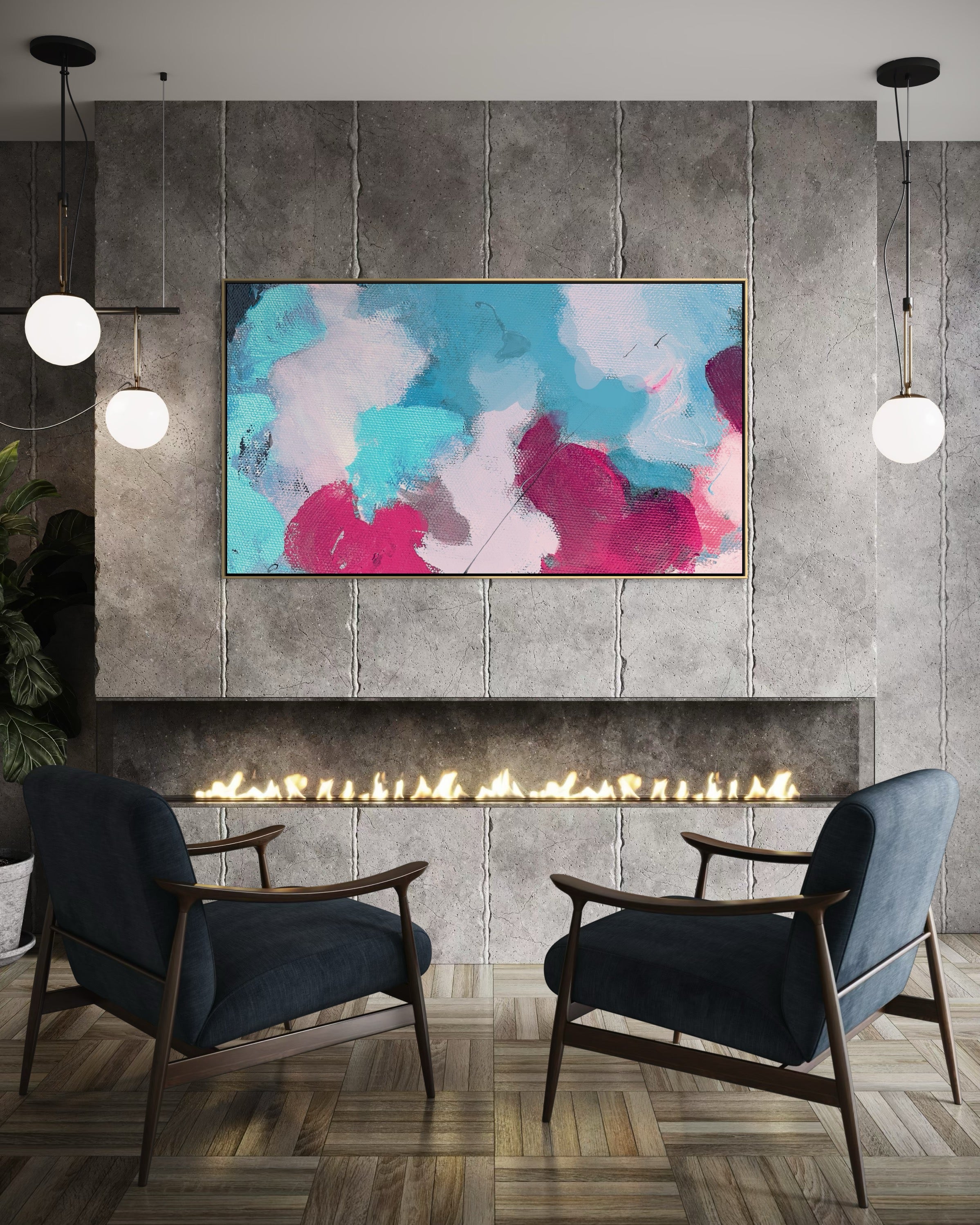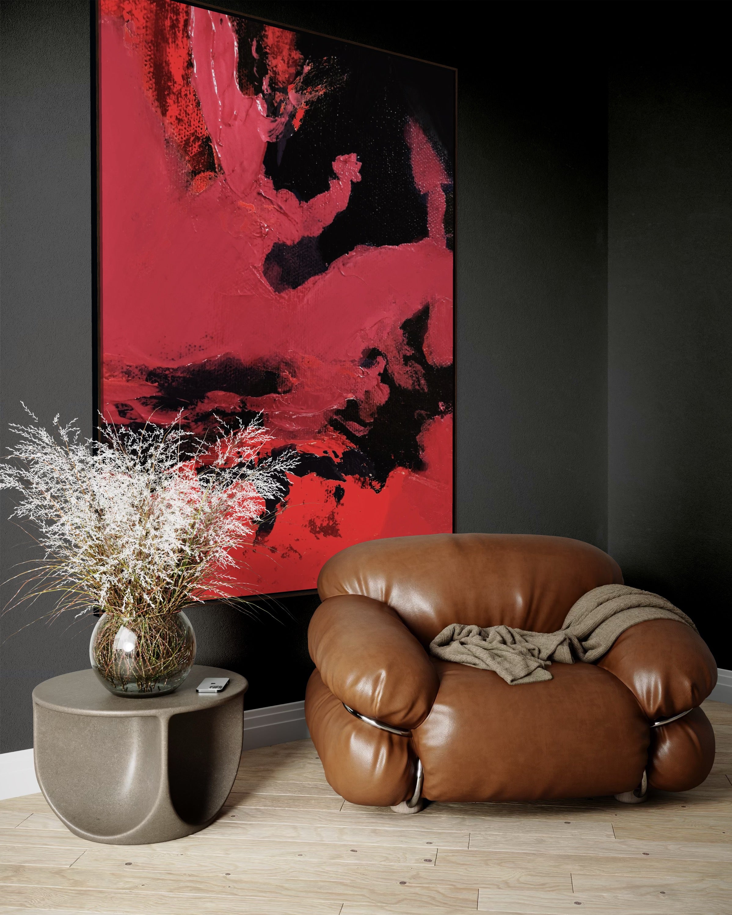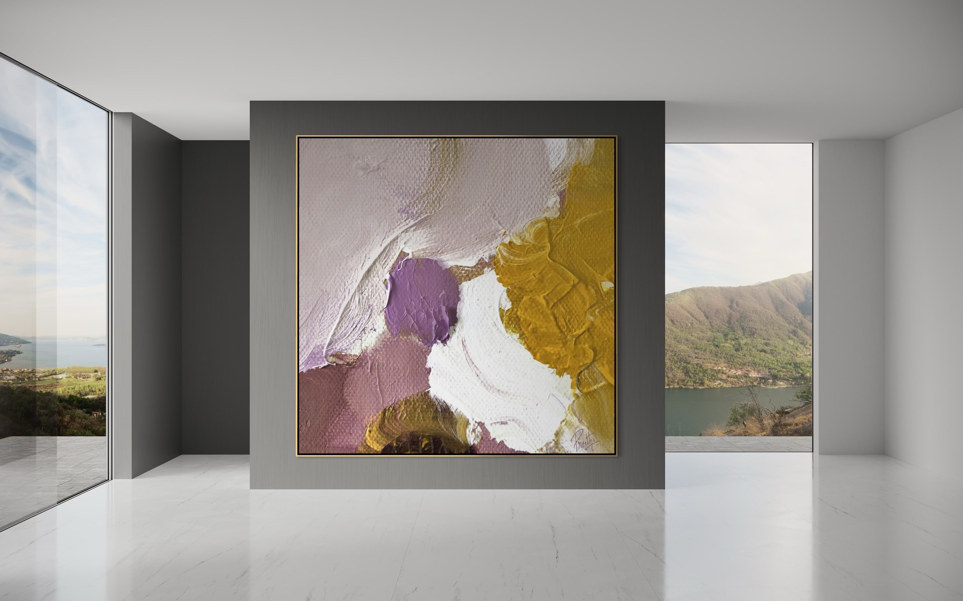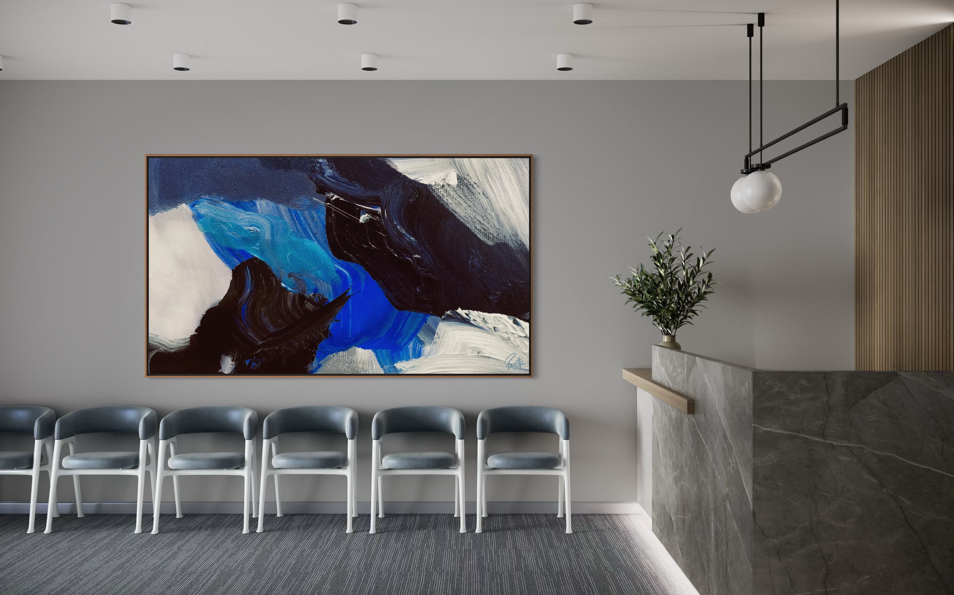 Curated artworks that balance cool greys and soft neutrals with warmth, movement, and timeless sophistication.