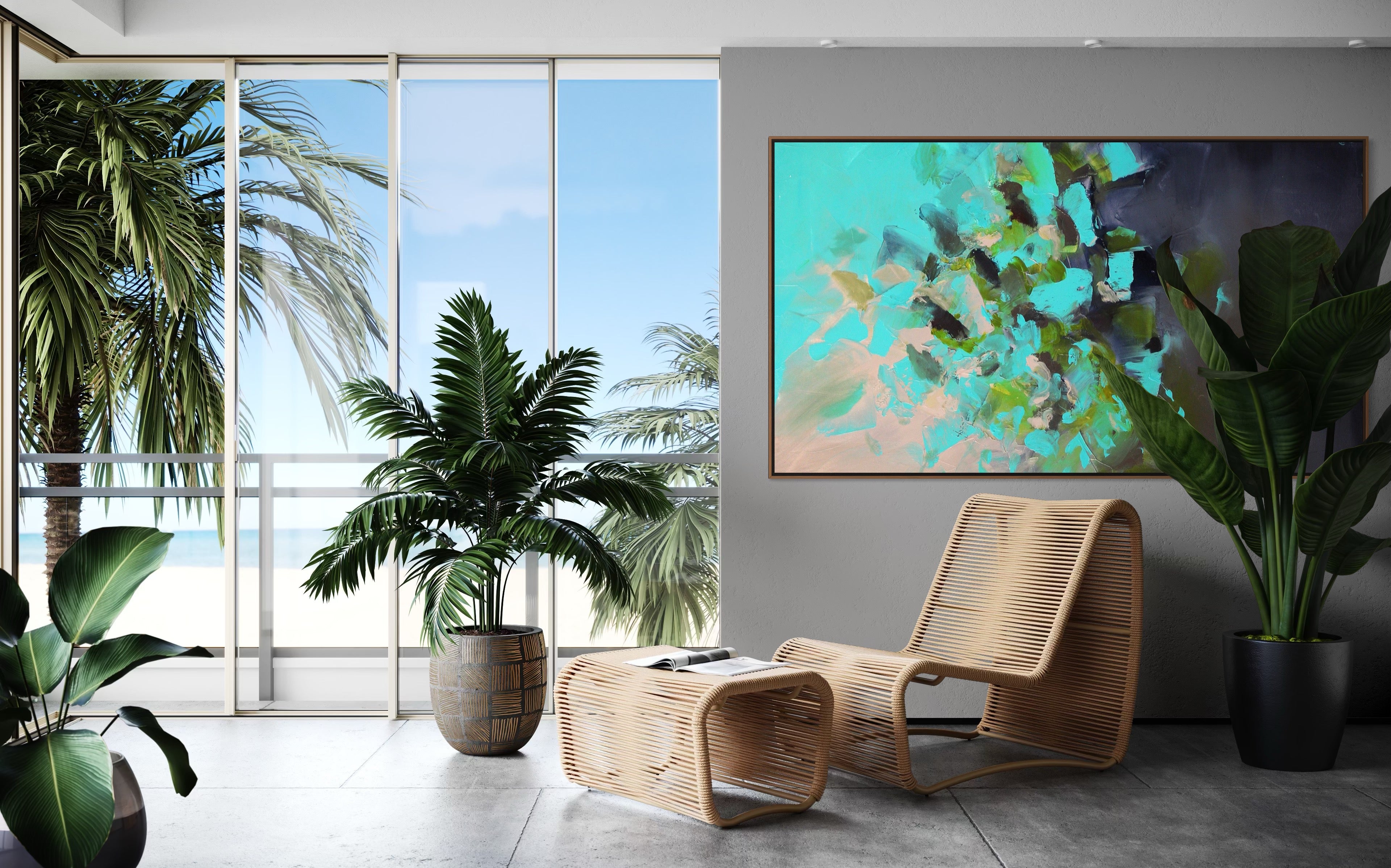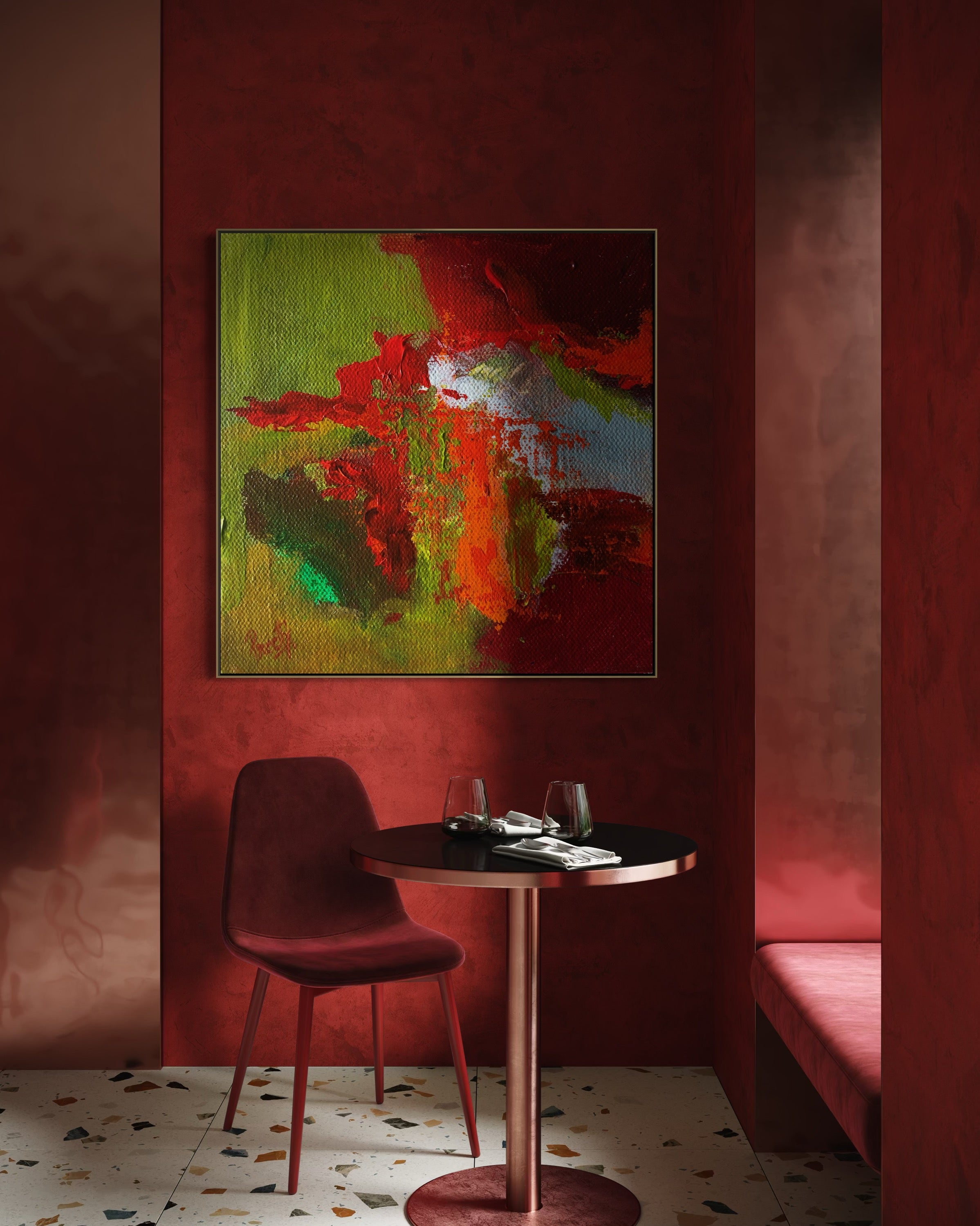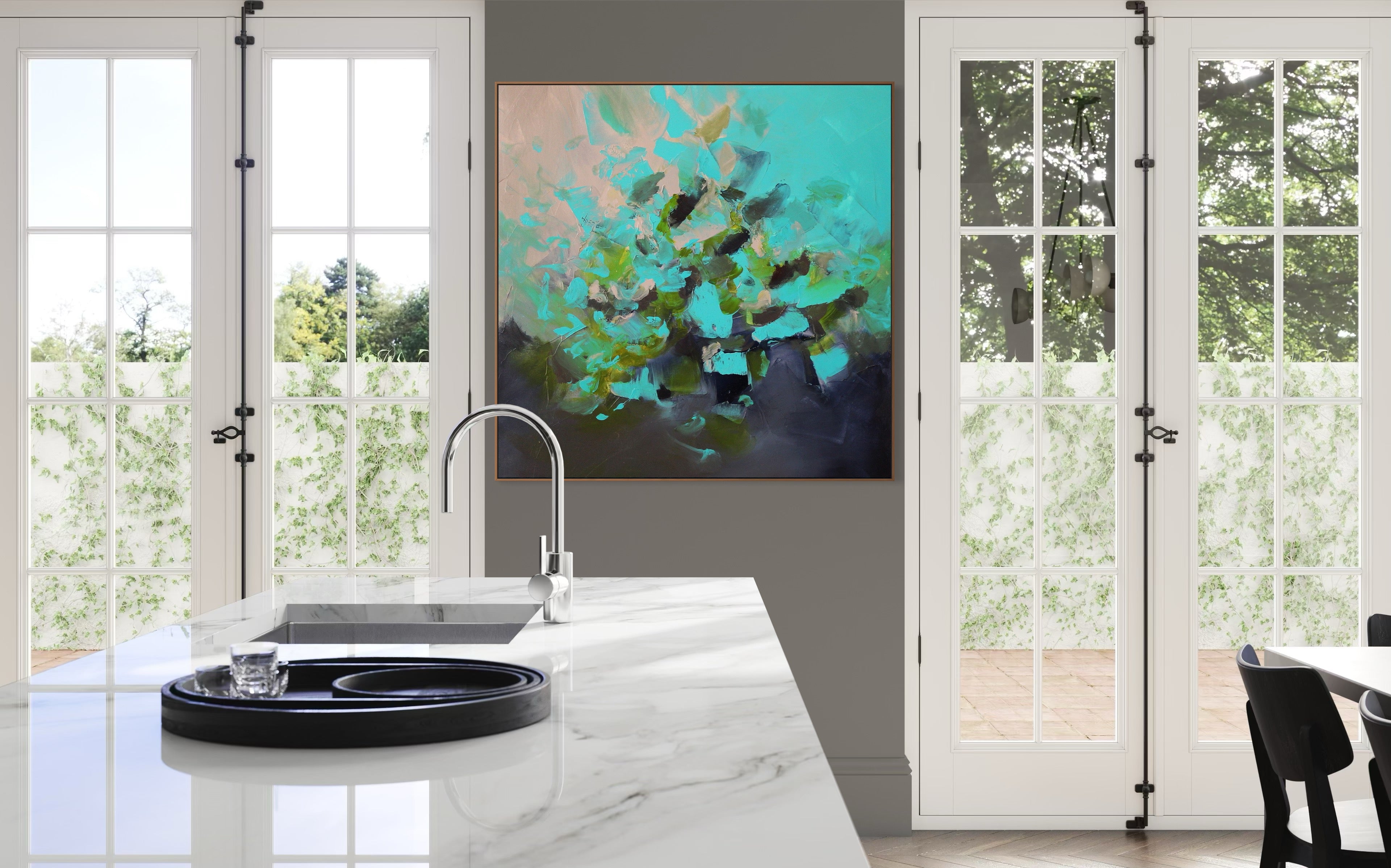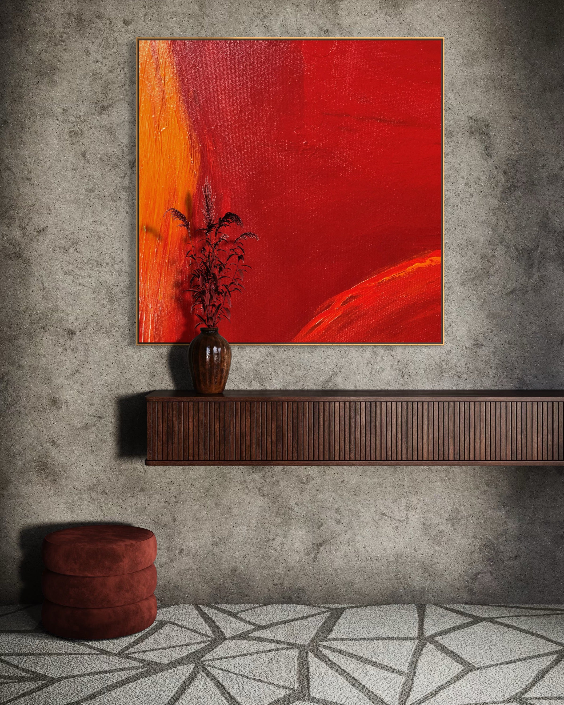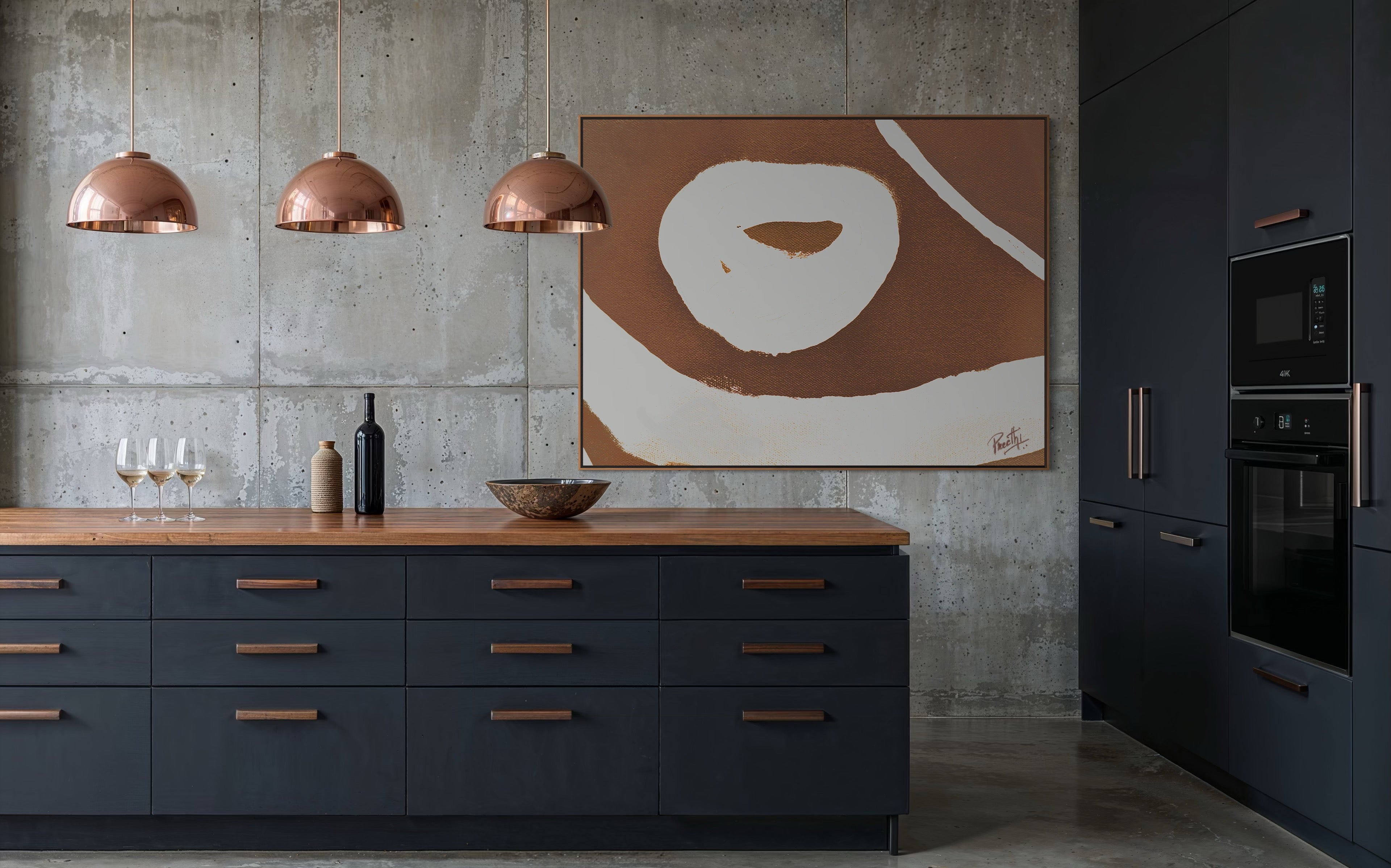 Curated artworks that balance cool greys and soft neutrals with warmth, movement, and timeless sophistication.