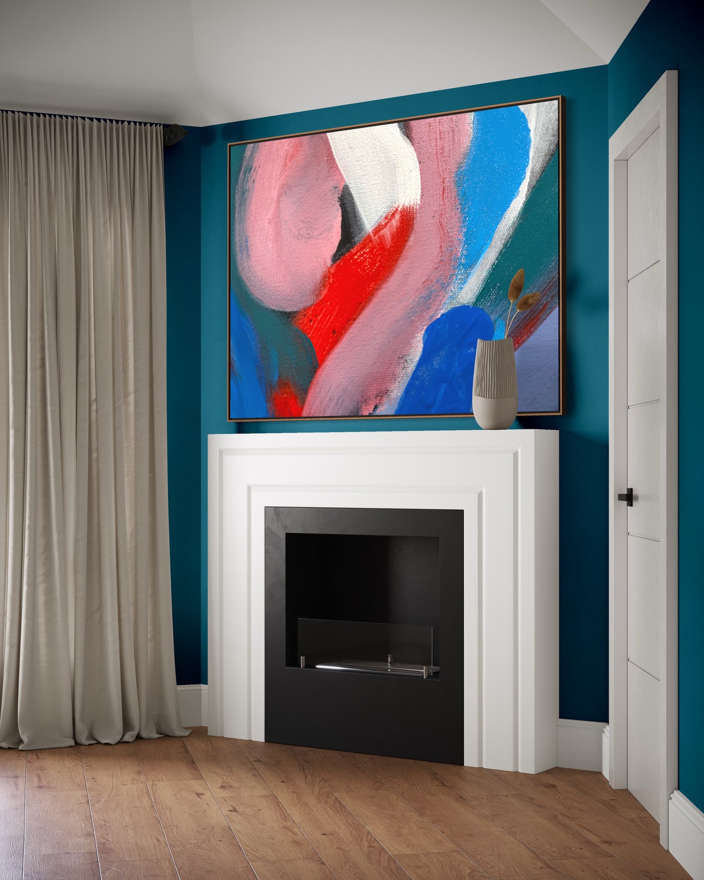 The dynamic streaks of blue, black, and orange represent the powerful intersection of creativity, chaos, and inspiration.