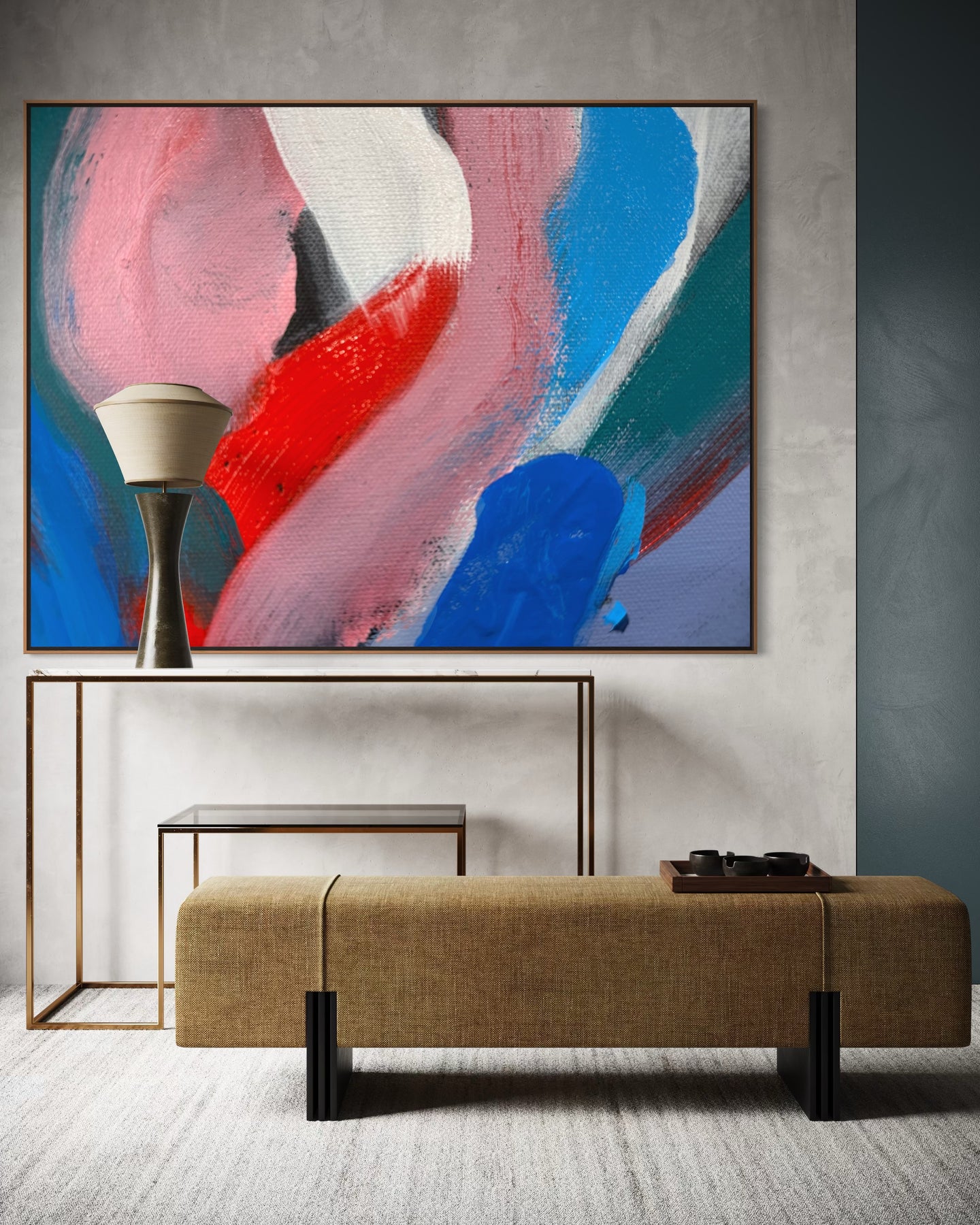 CANVAS TYPE: STRETCHED Canvas : 1.5" deep stretched artwork with hanging wires but no outer frames.